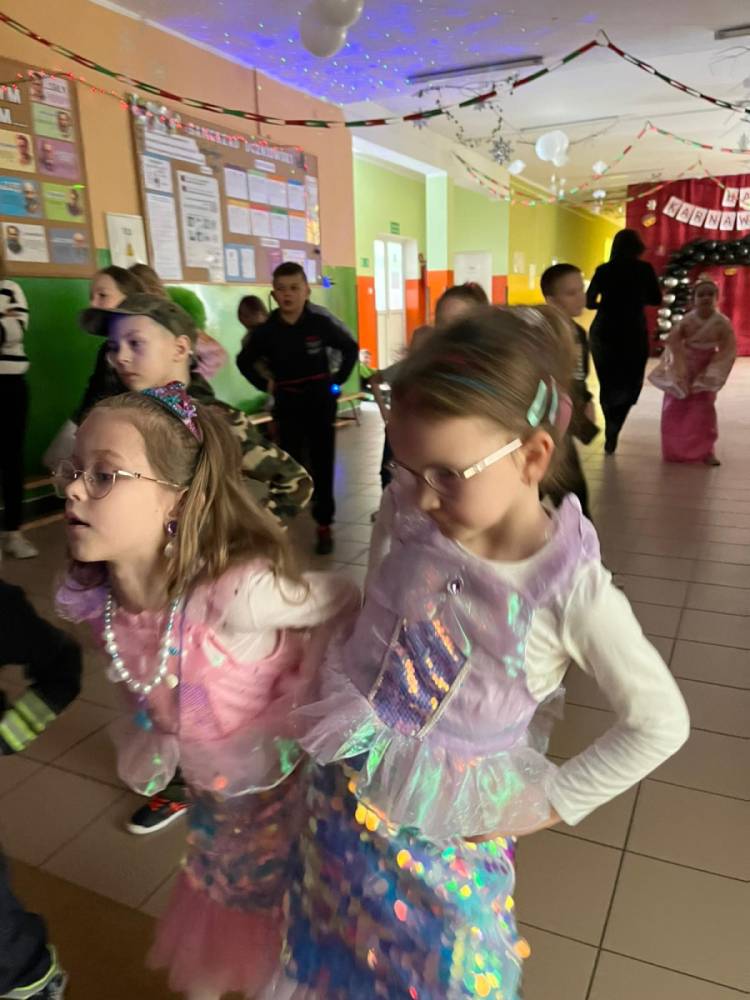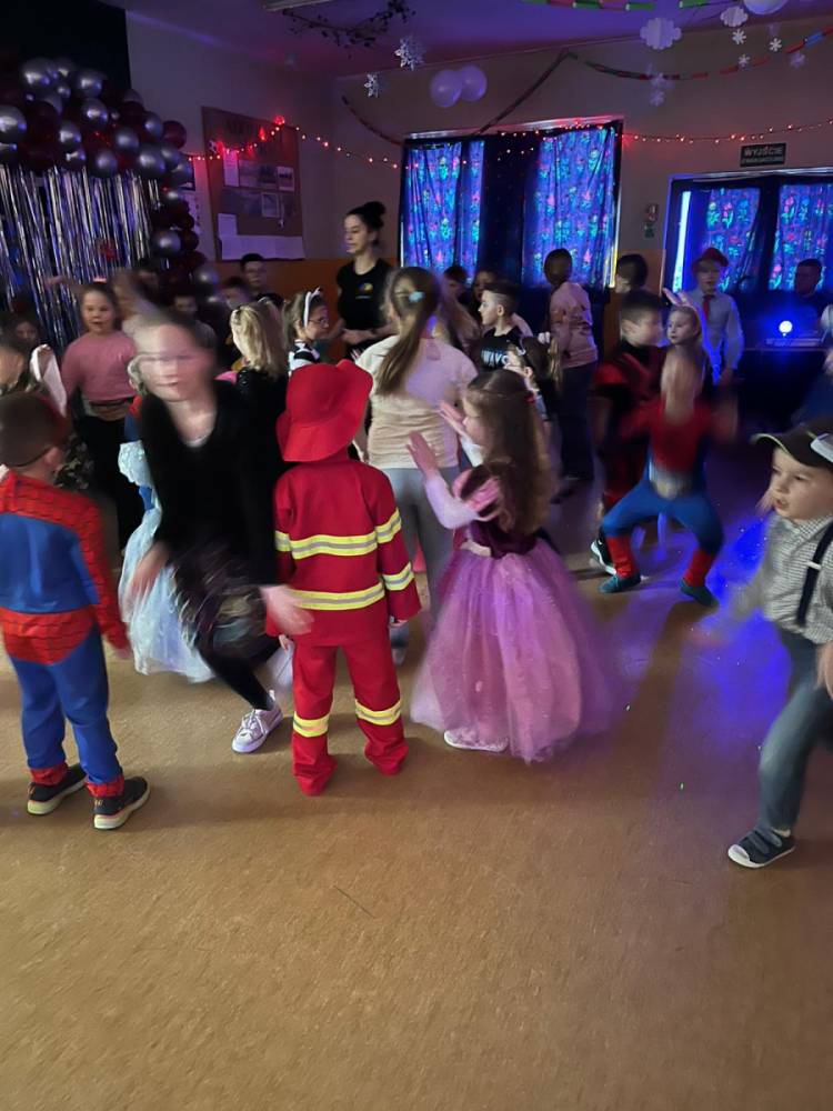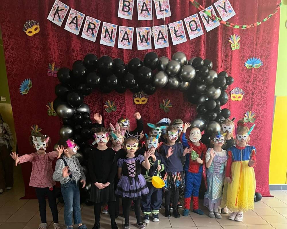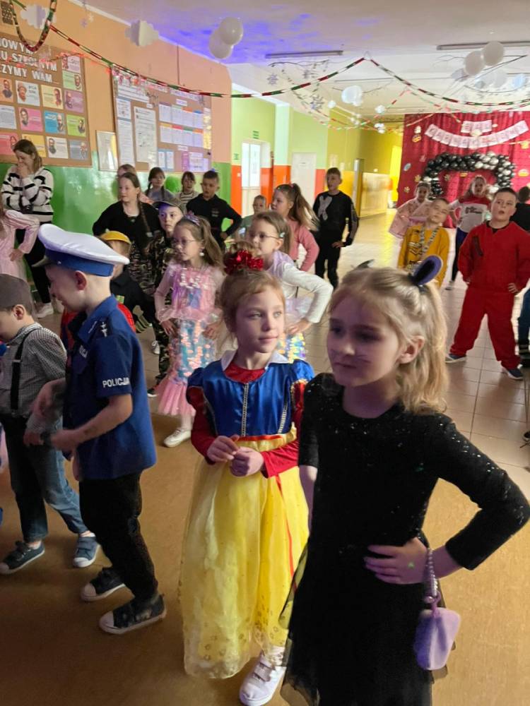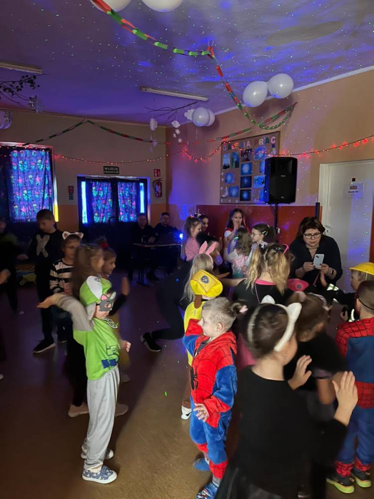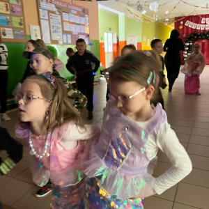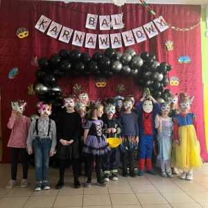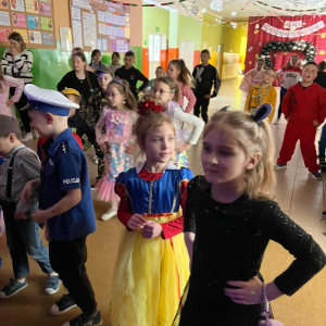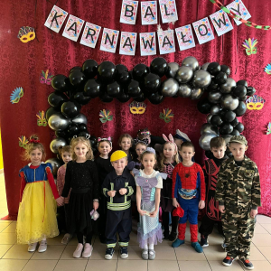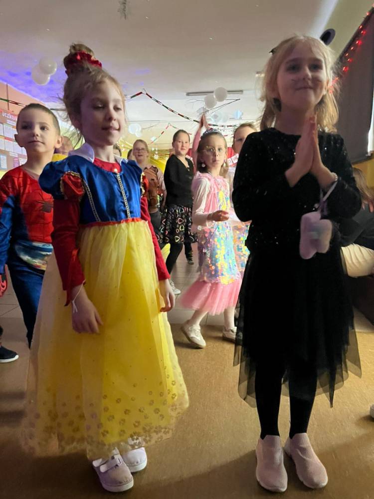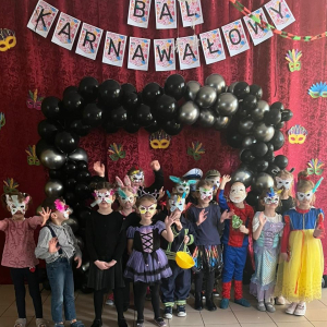 Korzystając z tego w piątek 6 lutego 2026 roku w naszej szkole odbyła się radosna zabawa karnawałowa pod hasłem „W krainie baśni i superbohaterów”. Dzieci przebrały się za różne postacie, tworząc barwną i bajkową atmosferę. Uczniowie wspaniale bawili się podczas licznych zabaw prowadzonych przez DJ-a oraz animatorkę. Wspólnie przygotowywaliśmy kolorowe maski karnawałowe, które dodały wydarzeniu wyjątkowego charakteru. Nie zabrakło także słodkości – na stołach pojawiły się pyszne ciasta, babeczki, popcorn oraz wata cukrowa. Podczas zabawy odbyły się również konkursy, które dostarczyły wszystkim wiele radości i emocji.