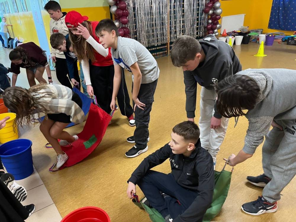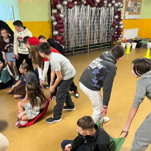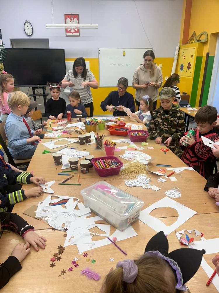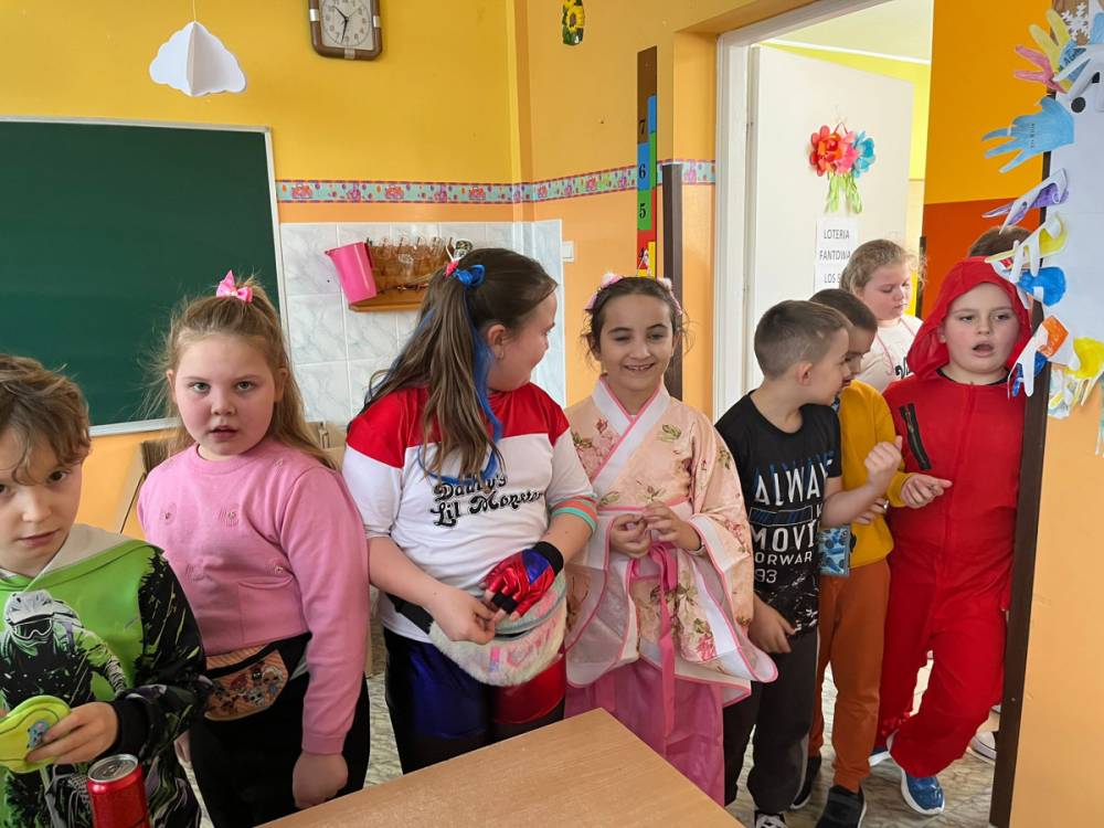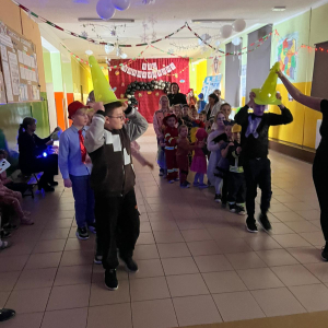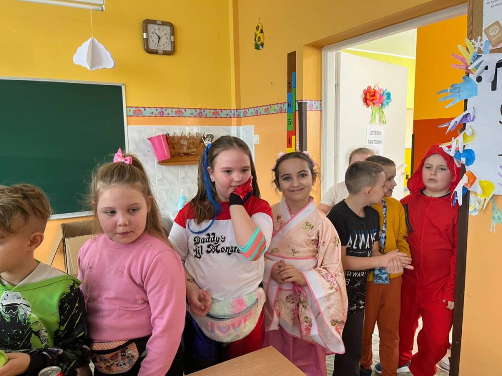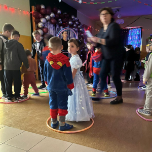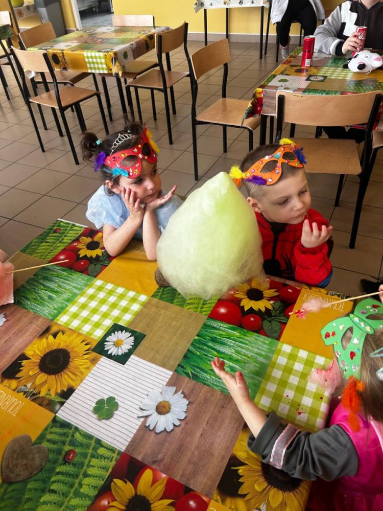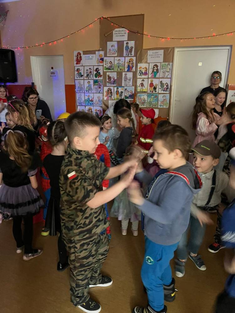 Korzystając z tego w piątek 6 lutego 2026 roku w naszej szkole odbyła się radosna zabawa karnawałowa pod hasłem „W krainie baśni i superbohaterów”. Dzieci przebrały się za różne postacie, tworząc barwną i bajkową atmosferę. Uczniowie wspaniale bawili się podczas licznych zabaw prowadzonych przez DJ-a oraz animatorkę. Wspólnie przygotowywaliśmy kolorowe maski karnawałowe, które dodały wydarzeniu wyjątkowego charakteru. Nie zabrakło także słodkości – na stołach pojawiły się pyszne ciasta, babeczki, popcorn oraz wata cukrowa. Podczas zabawy odbyły się również konkursy, które dostarczyły wszystkim wiele radości i emocji.