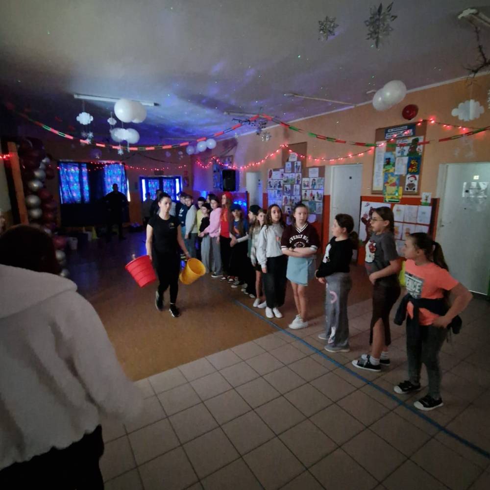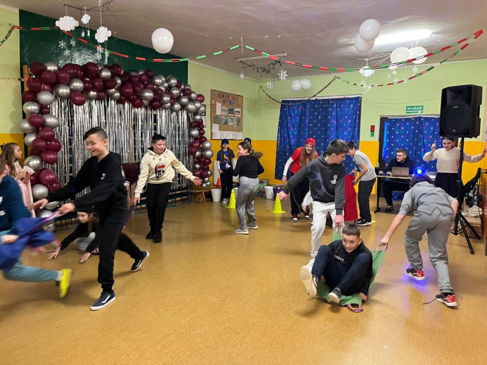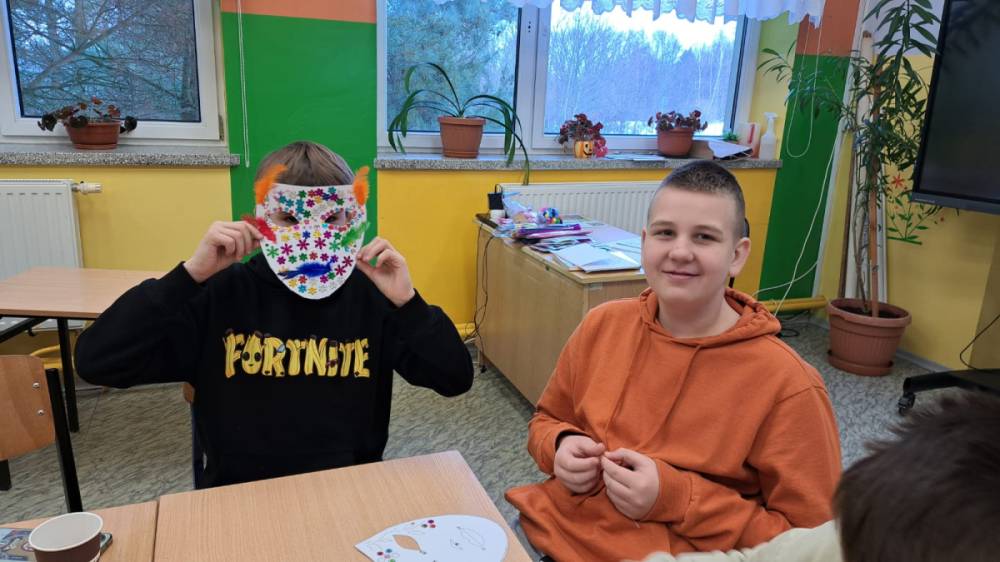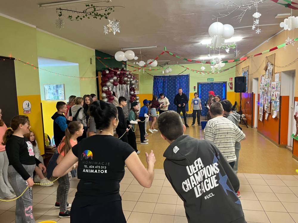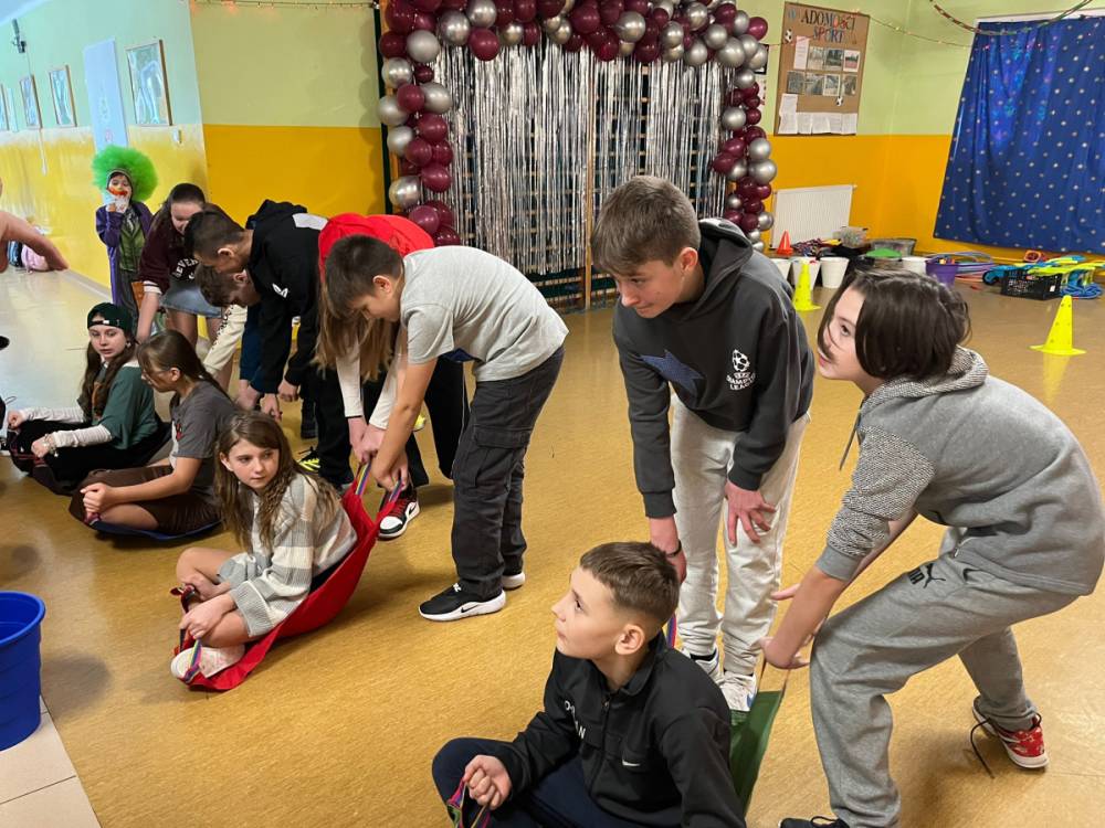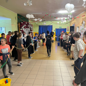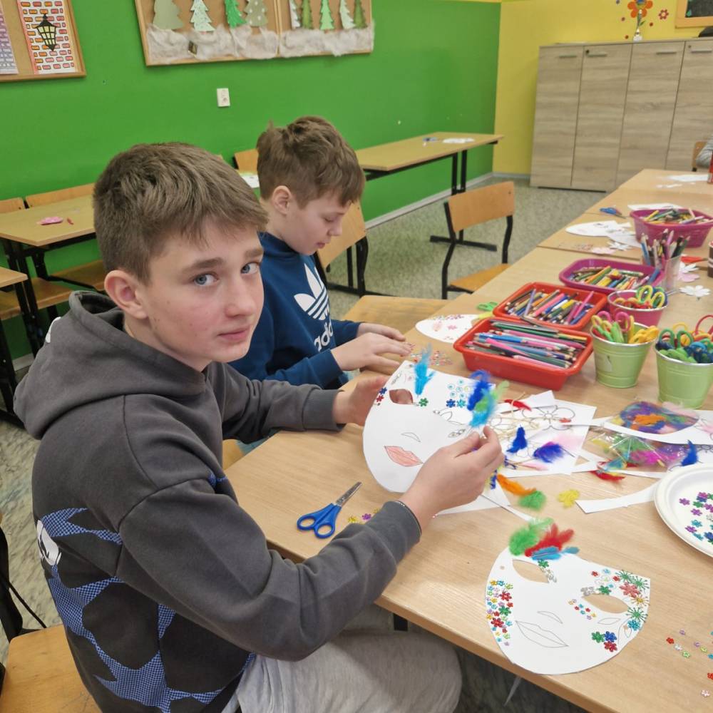 Korzystając z tego w piątek 6 lutego 2026 roku w naszej szkole odbyła się radosna zabawa karnawałowa pod hasłem „W krainie baśni i superbohaterów”. Dzieci przebrały się za różne postacie, tworząc barwną i bajkową atmosferę. Uczniowie wspaniale bawili się podczas licznych zabaw prowadzonych przez DJ-a oraz animatorkę. Wspólnie przygotowywaliśmy kolorowe maski karnawałowe, które dodały wydarzeniu wyjątkowego charakteru. Nie zabrakło także słodkości – na stołach pojawiły się pyszne ciasta, babeczki, popcorn oraz wata cukrowa. Podczas zabawy odbyły się również konkursy, które dostarczyły wszystkim wiele radości i emocji.