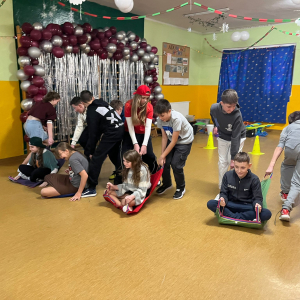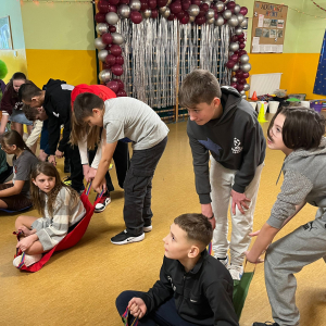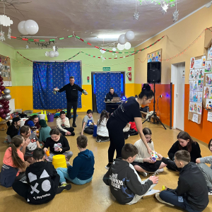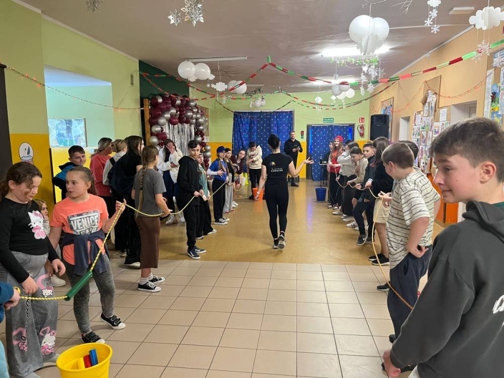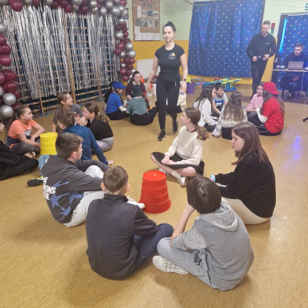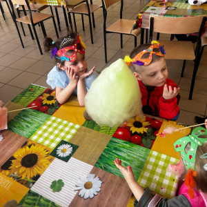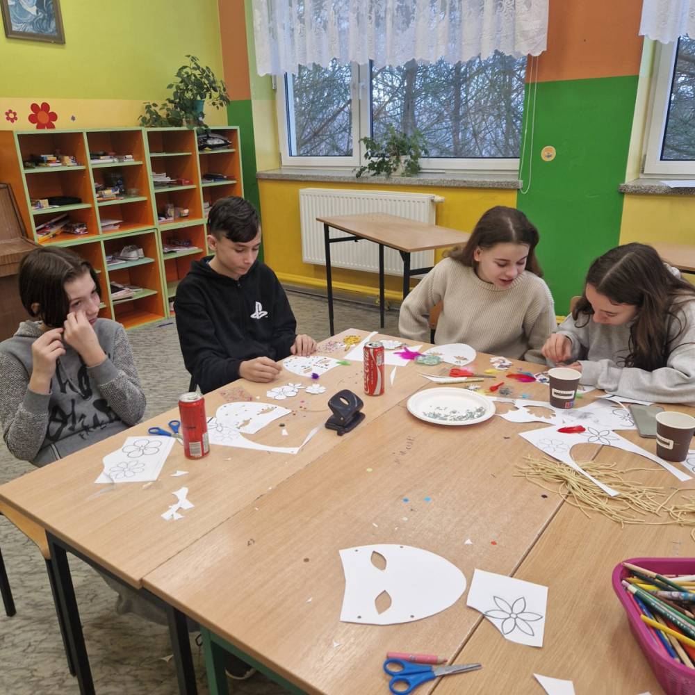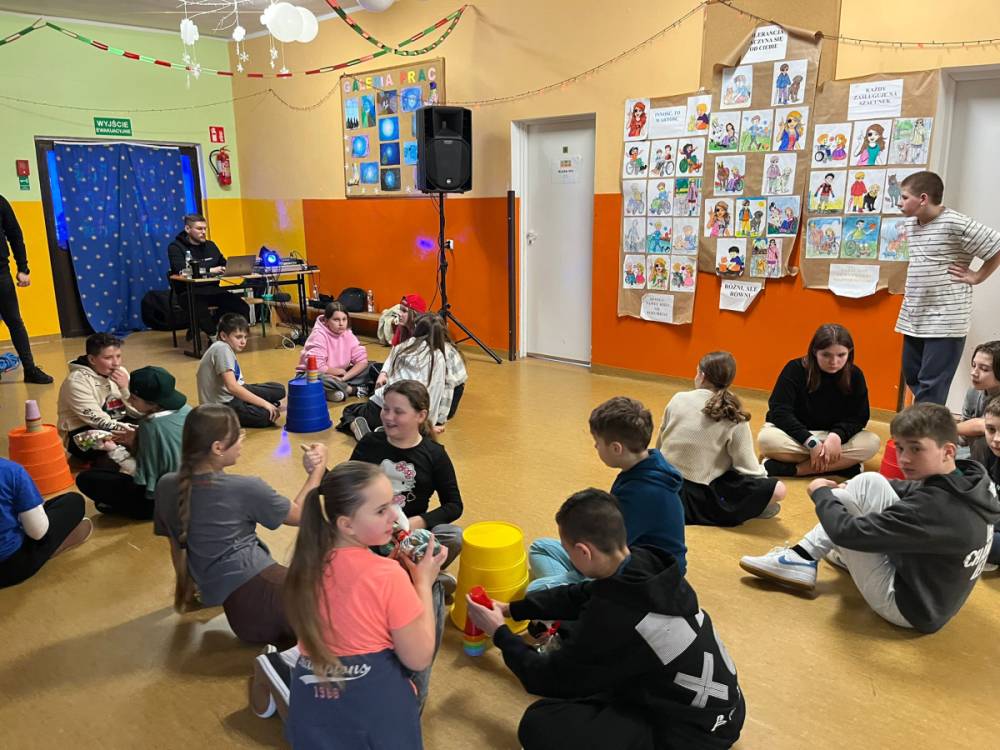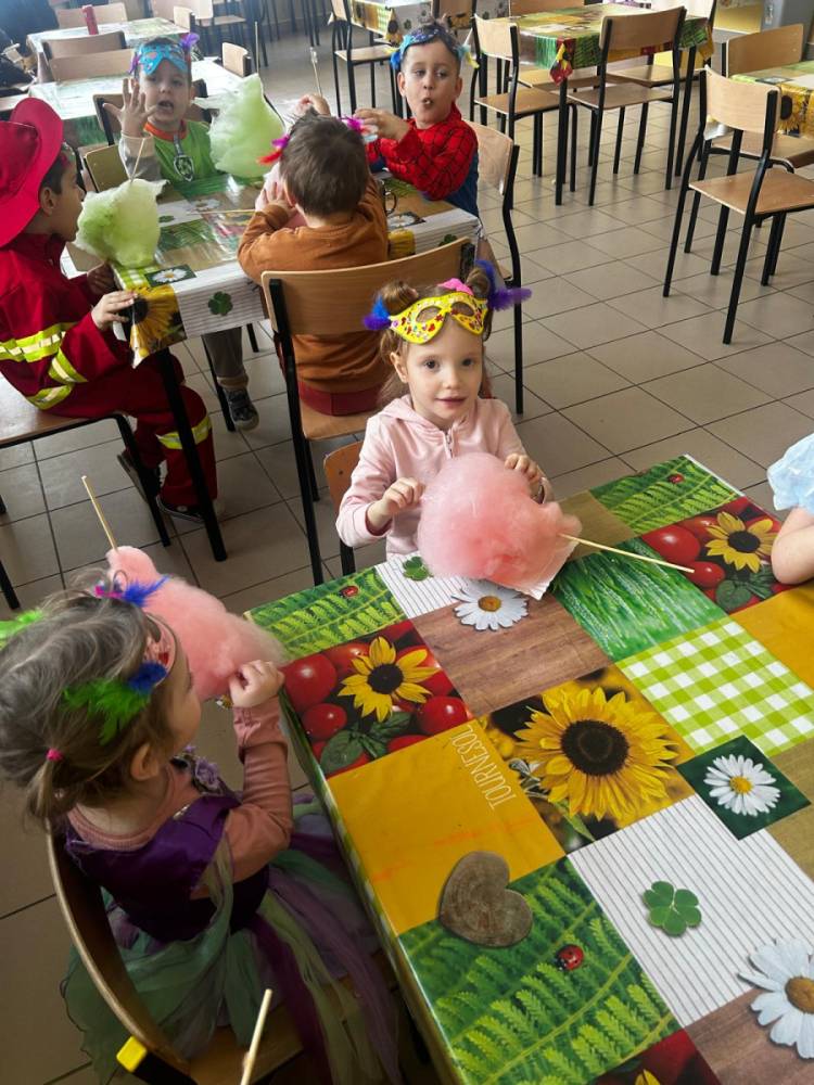 Korzystając z tego w piątek 6 lutego 2026 roku w naszej szkole odbyła się radosna zabawa karnawałowa pod hasłem „W krainie baśni i superbohaterów”. Dzieci przebrały się za różne postacie, tworząc barwną i bajkową atmosferę. Uczniowie wspaniale bawili się podczas licznych zabaw prowadzonych przez DJ-a oraz animatorkę. Wspólnie przygotowywaliśmy kolorowe maski karnawałowe, które dodały wydarzeniu wyjątkowego charakteru. Nie zabrakło także słodkości – na stołach pojawiły się pyszne ciasta, babeczki, popcorn oraz wata cukrowa. Podczas zabawy odbyły się również konkursy, które dostarczyły wszystkim wiele radości i emocji.