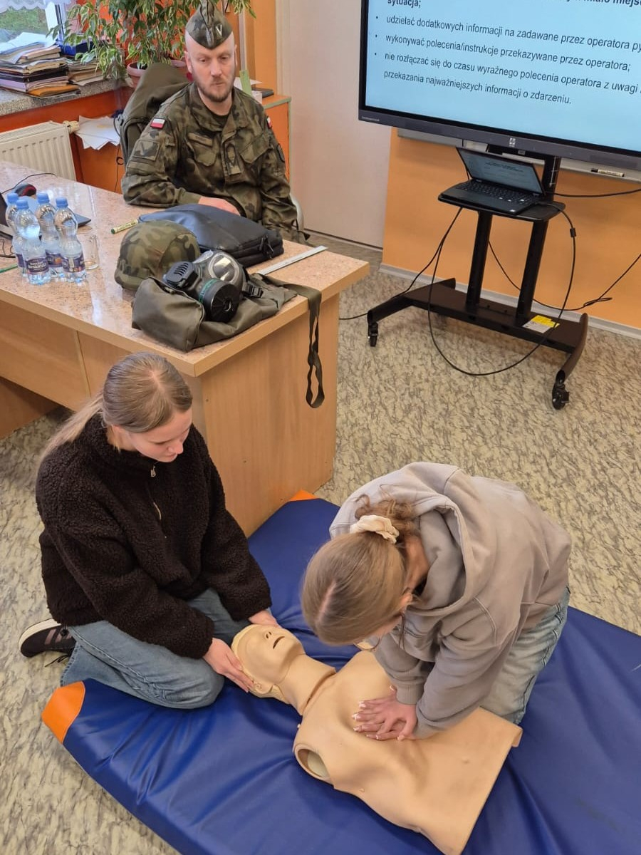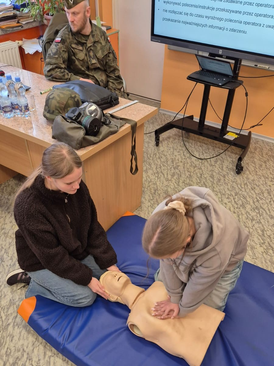 Dodatkowo odbył się pokaz pierwszej pomocy, podczas którego uczniowie uczyli się, jak prawidłowo wykonać resuscytację krążeniowo-oddechową (RKO) oraz jak reagować w nagłych sytuacjach.