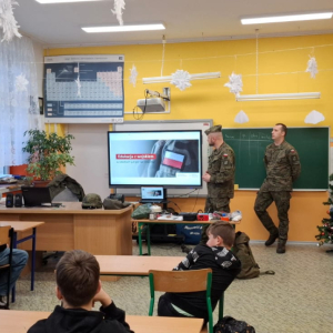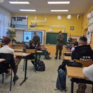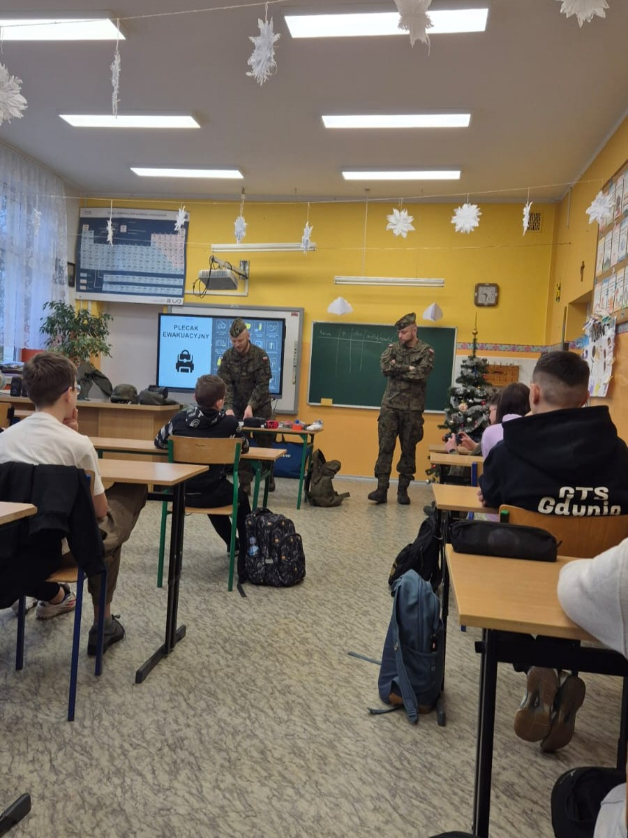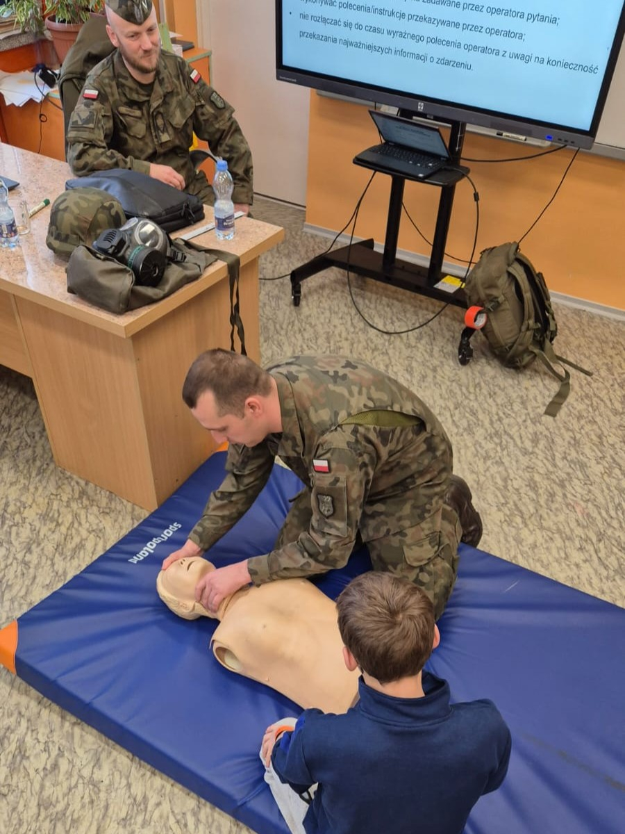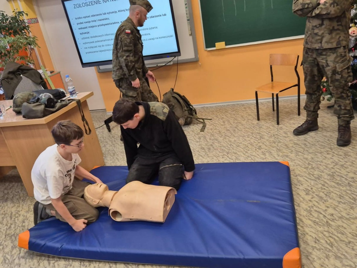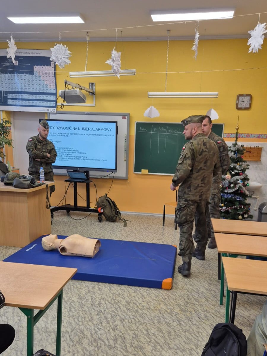 16 grudnia 2025 r. w naszej szkole odbyło się spotkanie z przedstawicielami Wojska Polskiego, podczas którego uczniowie mieli okazję dowiedzieć się, jak zachować się w sytuacjach zagrożenia życia i zdrowia.