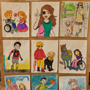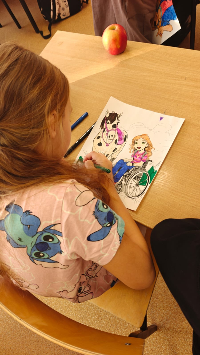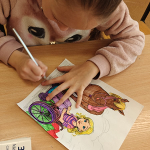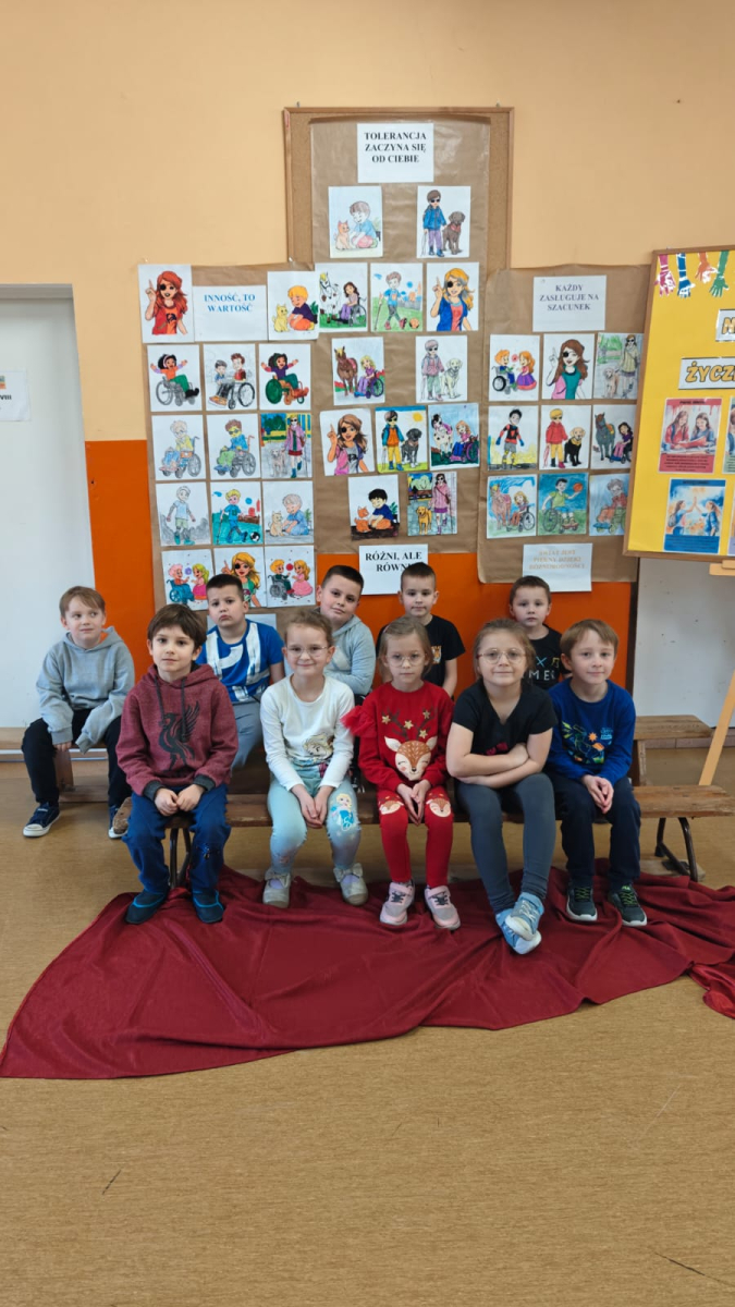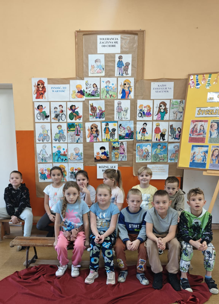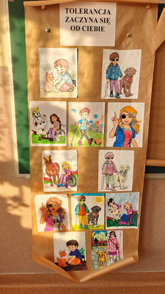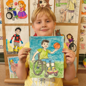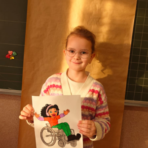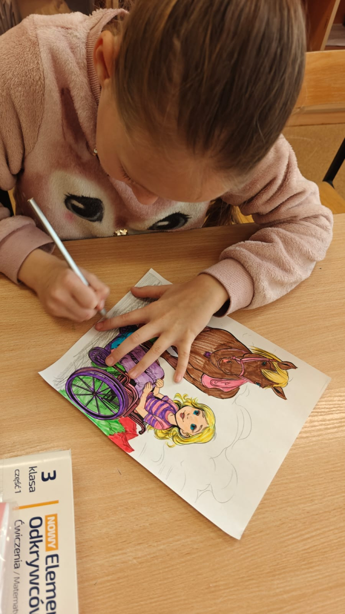 Z tej okazji uczniowie klas I–III przygotowali kolorowanki przedstawiające różnorodne osoby, m.in. ludzi poruszających się na wózku inwalidzkim, niewidzących czy wymagających różnego rodzaju wsparcia.