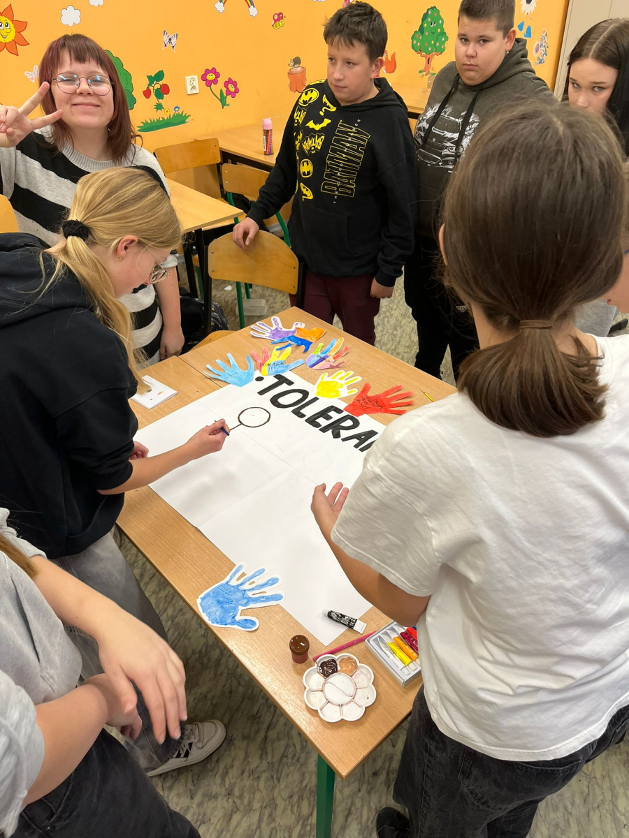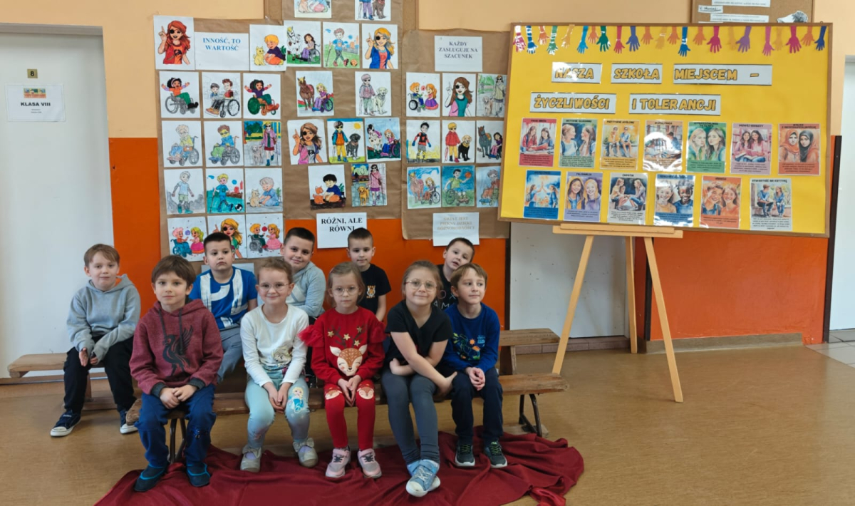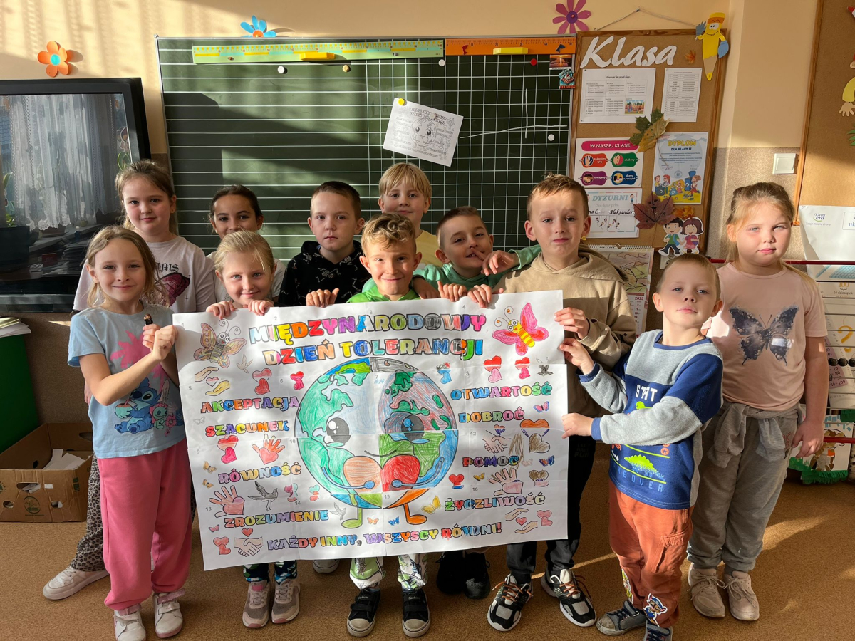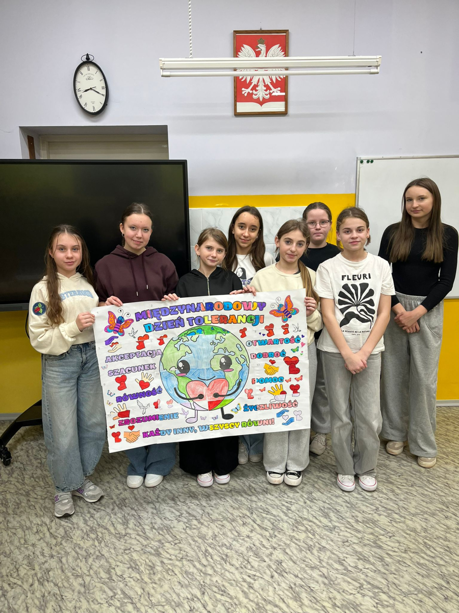 20 listopada 2025 r. w naszej szkole obchodziliśmy Dzień Tolerancji. Tego dnia pani pedagog przeprowadziła we wszystkich klasach pogadanki na temat znaczenia tolerancji, szacunku i zrozumienia wobec innych ludzi. Uczniowie rozmawiali o tym, czym jest akceptacja oraz jak ważne jest okazywanie życzliwości każdej osobie, bez względu na jej wygląd, sprawność, pochodzenie czy sposób bycia.