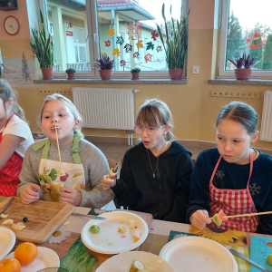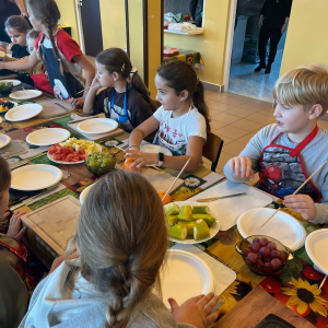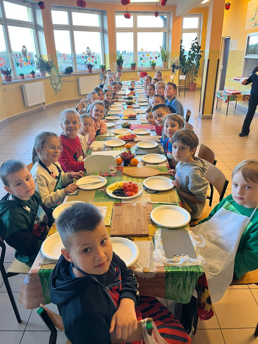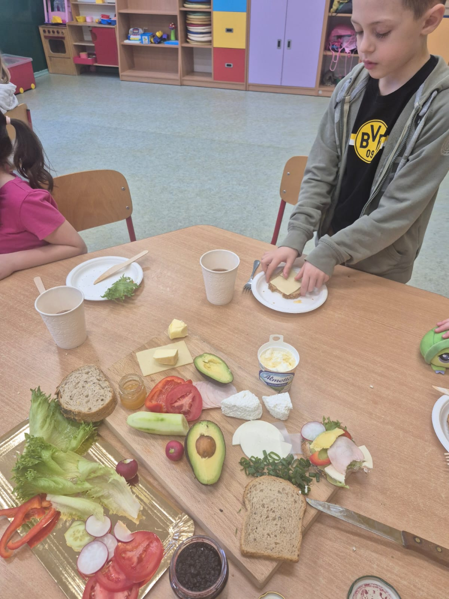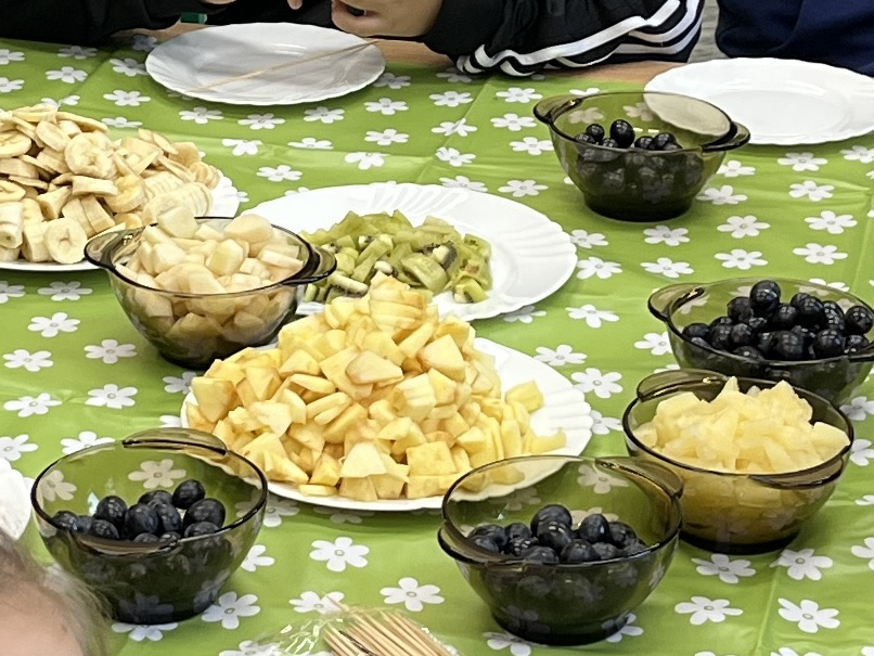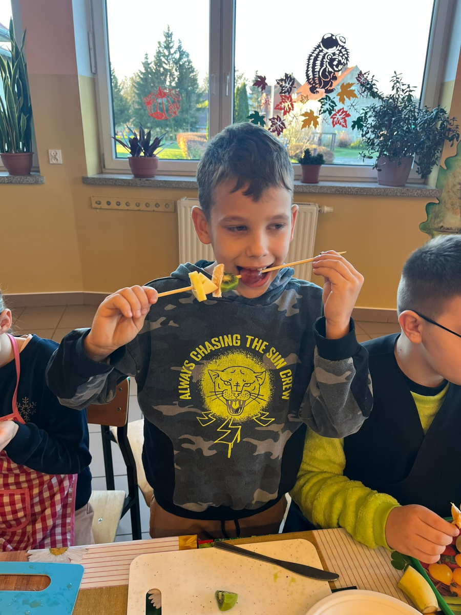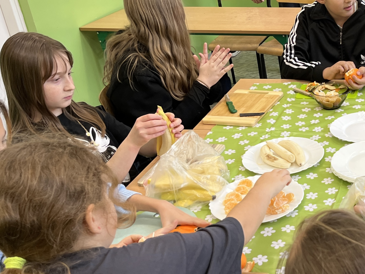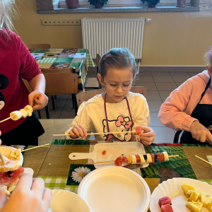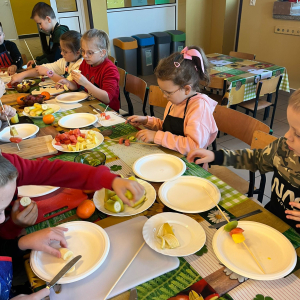 Dzisiaj świętowaliśmy Dzień Zdrowego Odżywiania i… było przepysznie! Przedszkolaki robiły zdrowe kanapki, w klasach zaś dzieci przygotowywały kolorowe, smaczne i zdrowe przekąski – szaszłyki owocowe i warzywne, które znikały szybciej niż zdążyliśmy je fotografować.