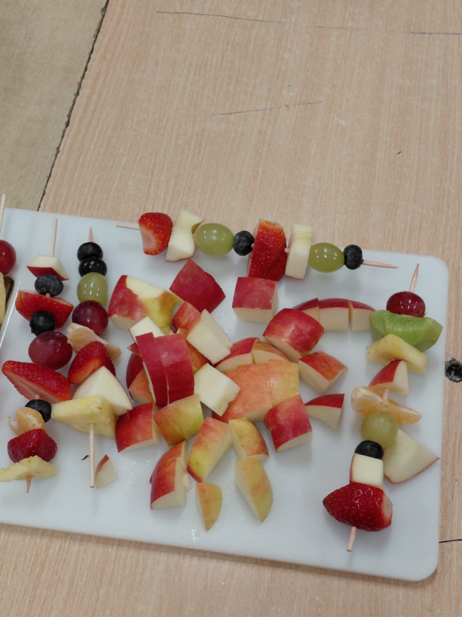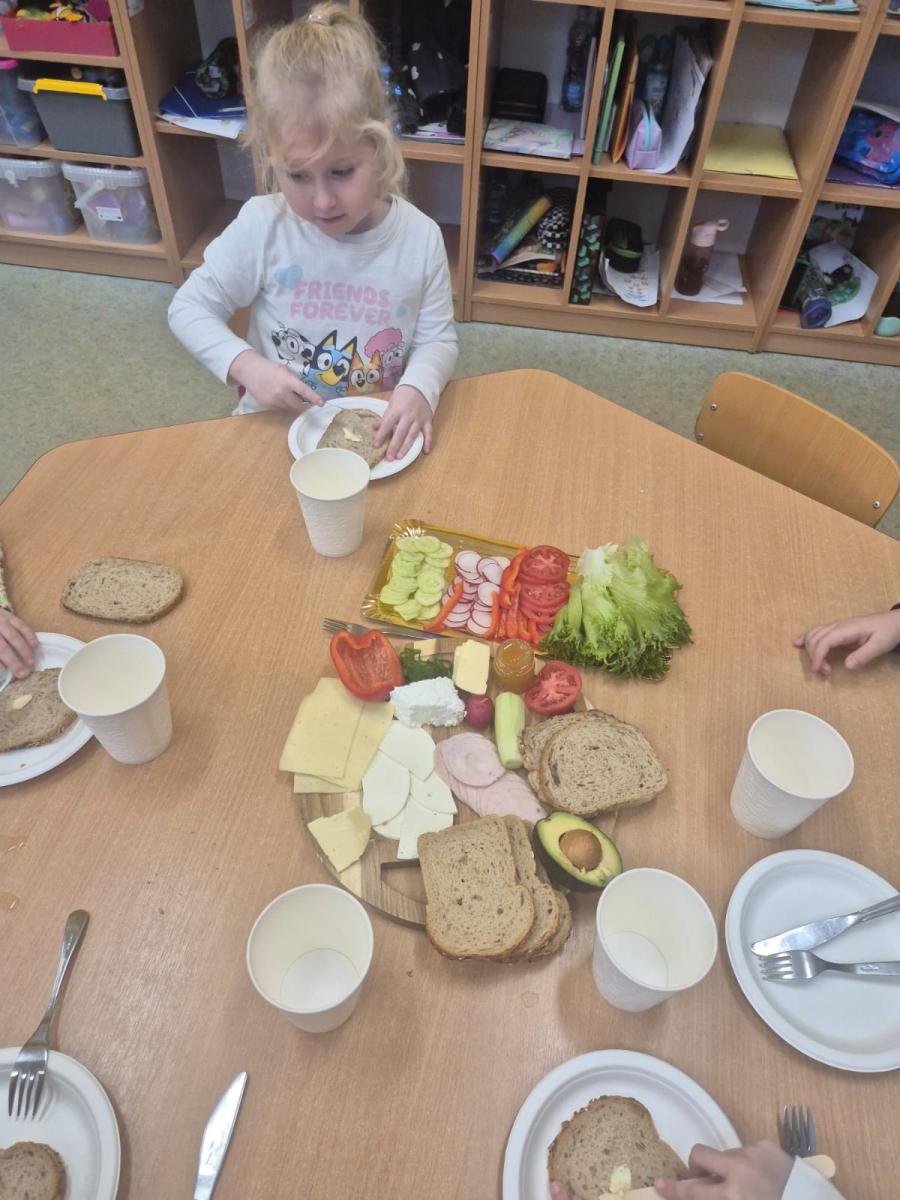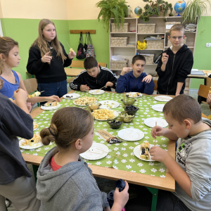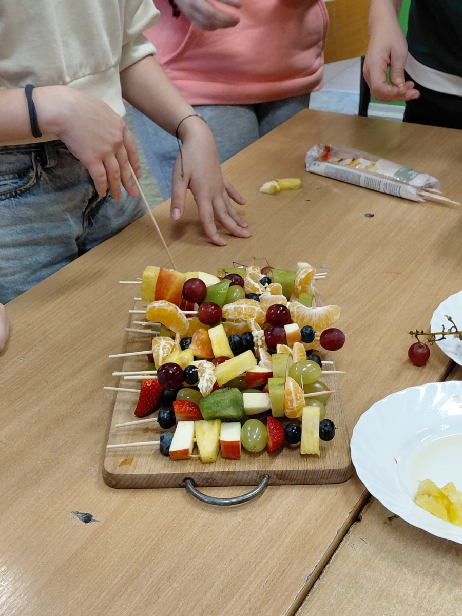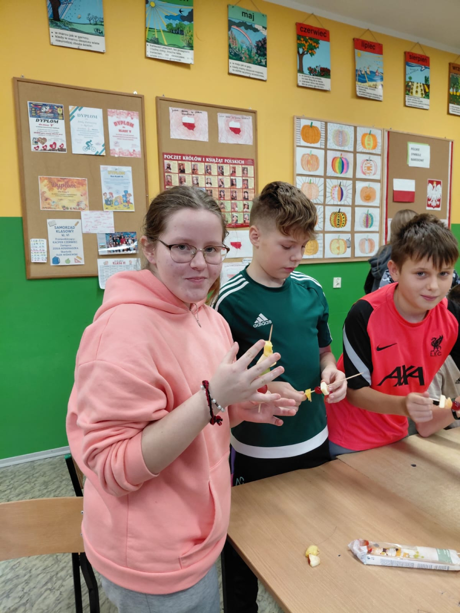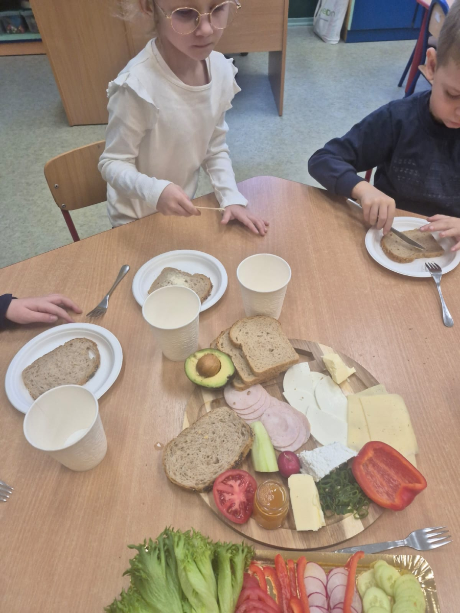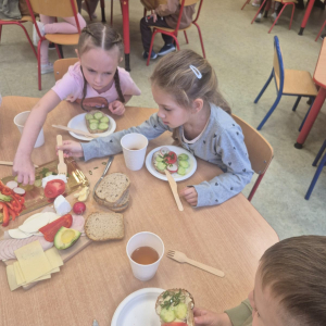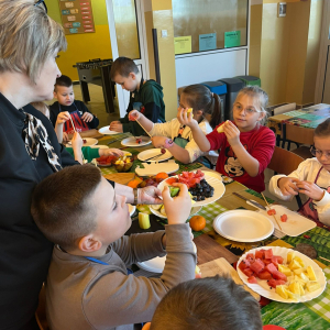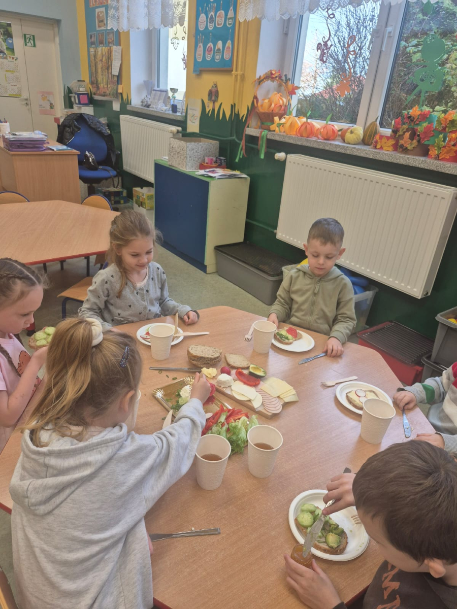 Dzisiaj świętowaliśmy Dzień Zdrowego Odżywiania i… było przepysznie! Przedszkolaki robiły zdrowe kanapki, w klasach zaś dzieci przygotowywały kolorowe, smaczne i zdrowe przekąski – szaszłyki owocowe i warzywne, które znikały szybciej niż zdążyliśmy je fotografować.