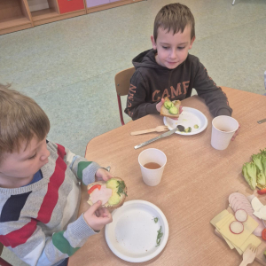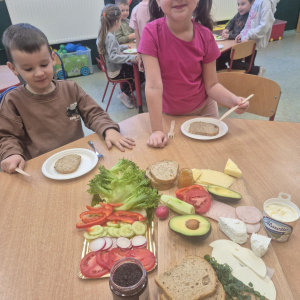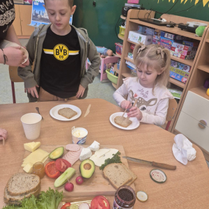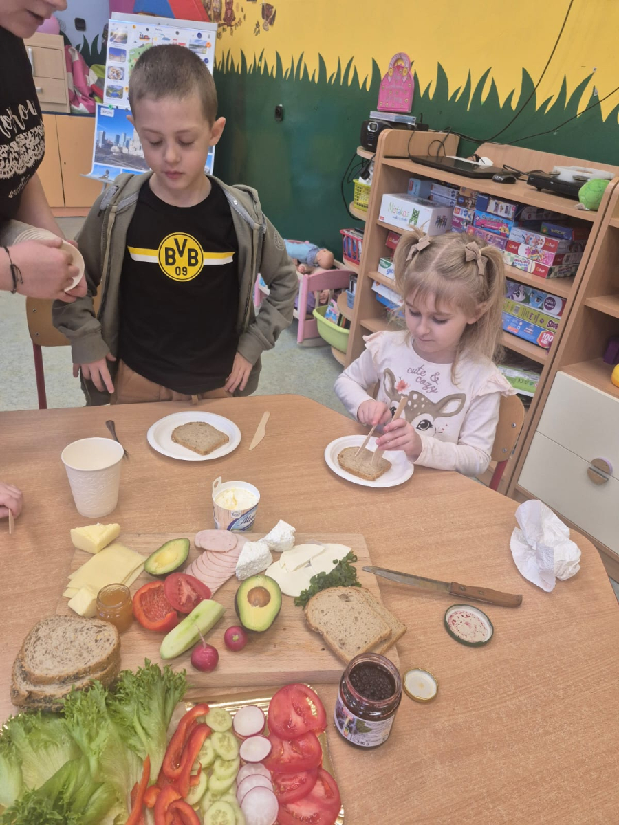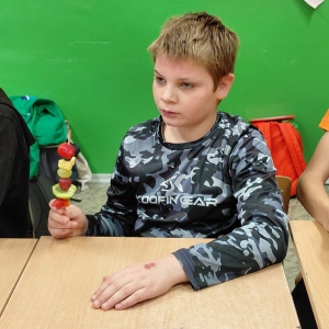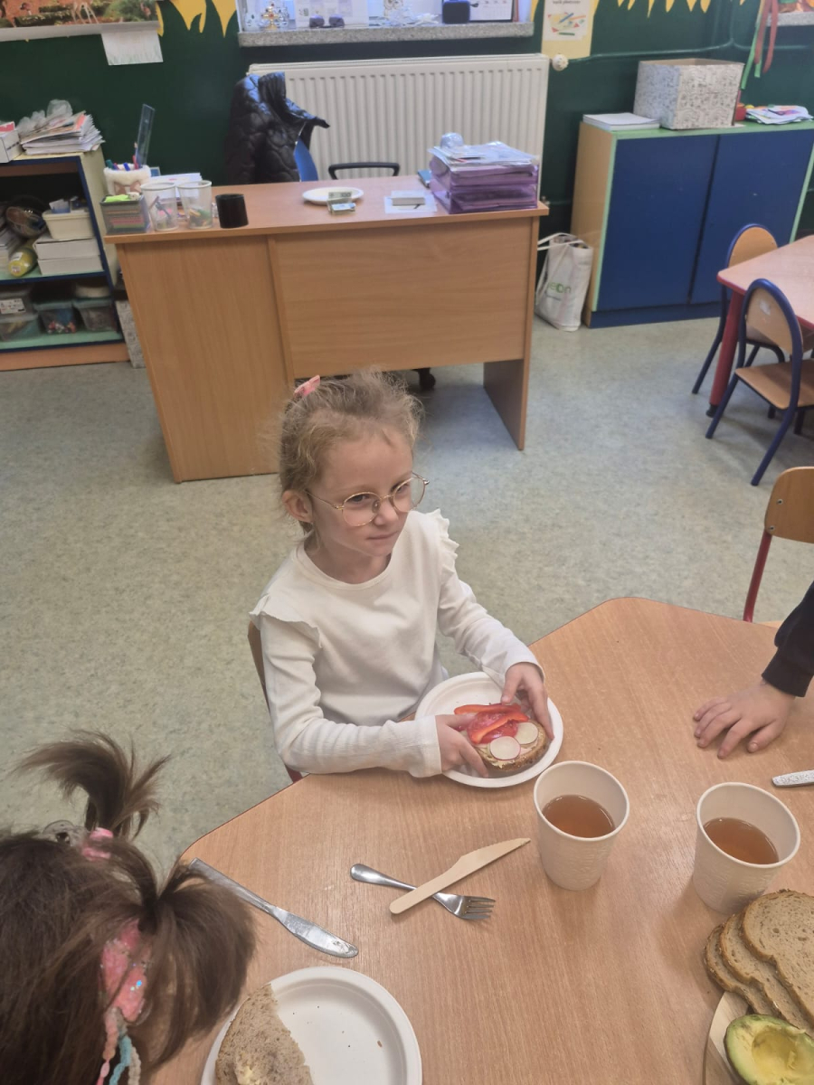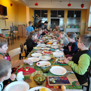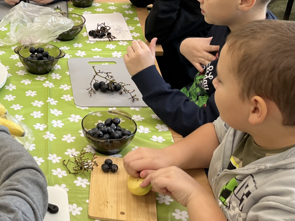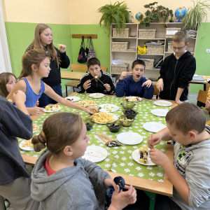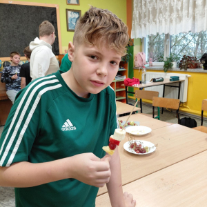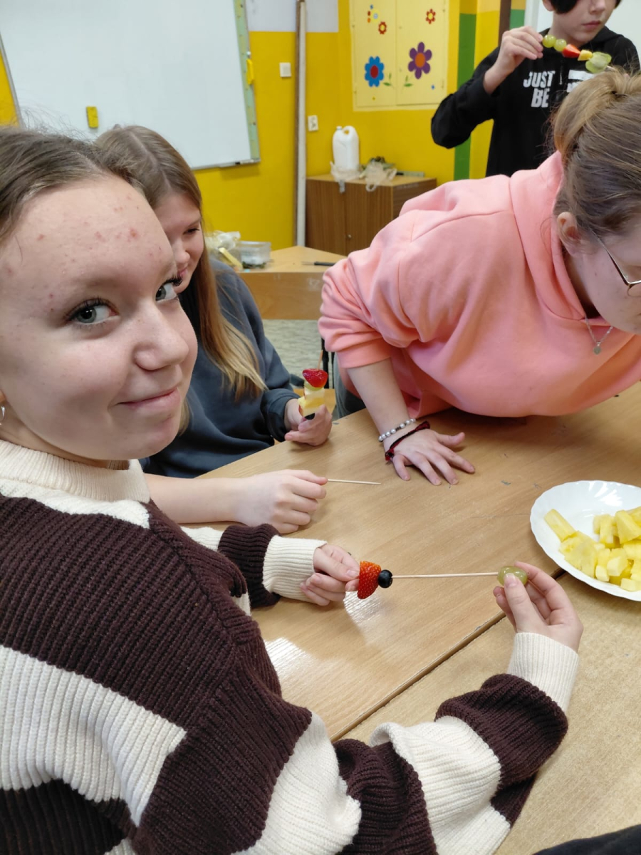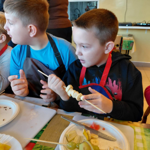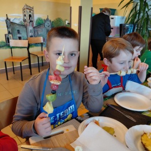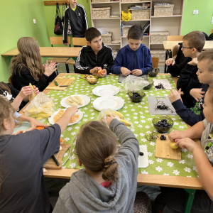 Dzisiaj świętowaliśmy Dzień Zdrowego Odżywiania i… było przepysznie! Przedszkolaki robiły zdrowe kanapki, w klasach zaś dzieci przygotowywały kolorowe, smaczne i zdrowe przekąski – szaszłyki owocowe i warzywne, które znikały szybciej niż zdążyliśmy je fotografować.