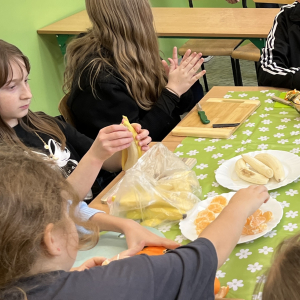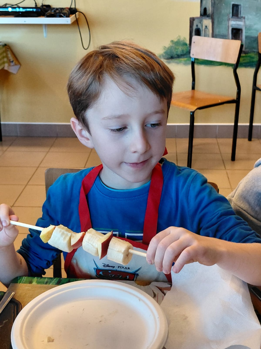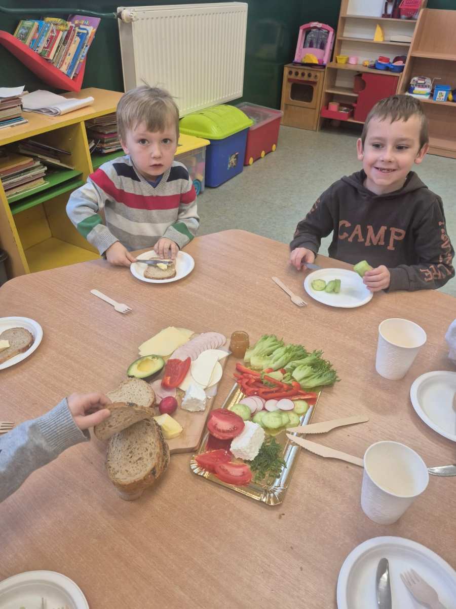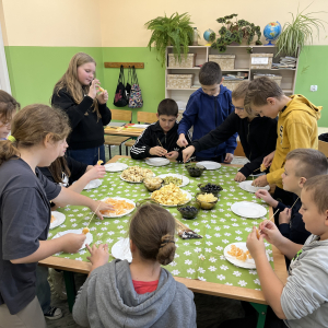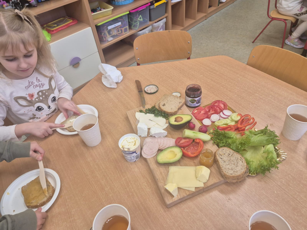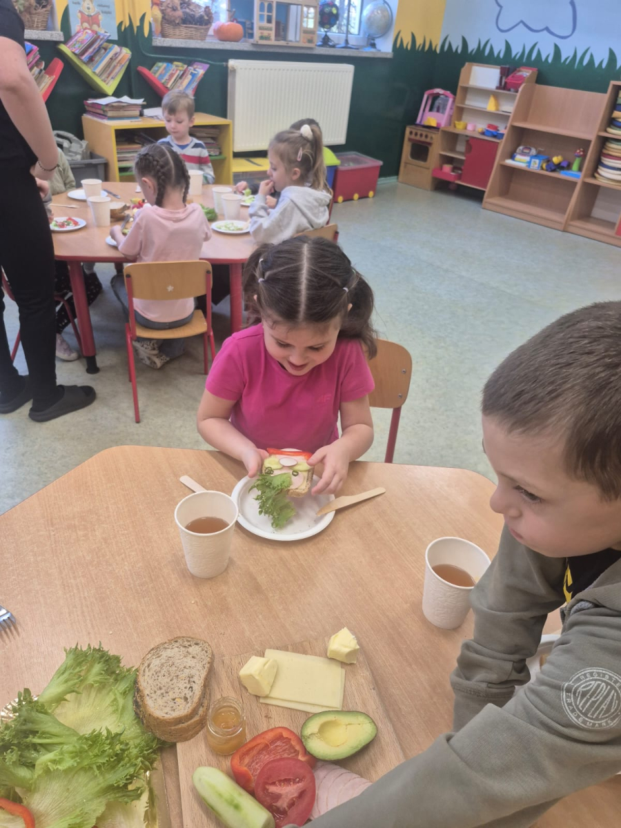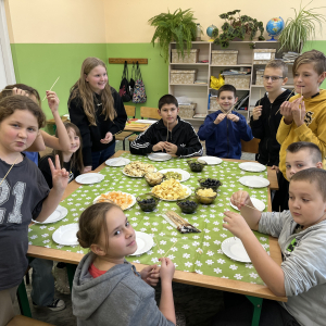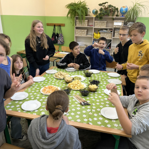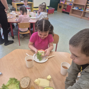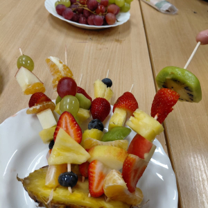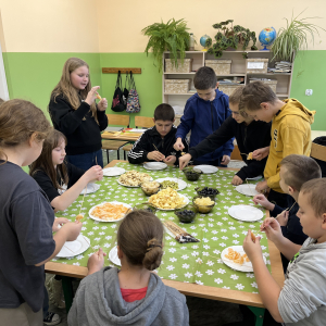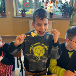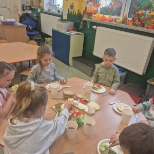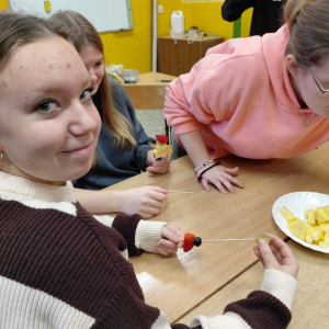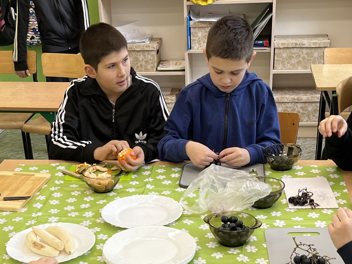 Dzisiaj świętowaliśmy Dzień Zdrowego Odżywiania i… było przepysznie! Przedszkolaki robiły zdrowe kanapki, w klasach zaś dzieci przygotowywały kolorowe, smaczne i zdrowe przekąski – szaszłyki owocowe i warzywne, które znikały szybciej niż zdążyliśmy je fotografować.