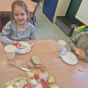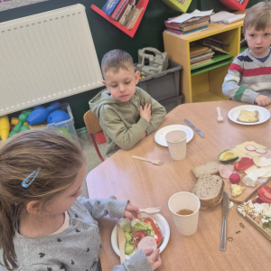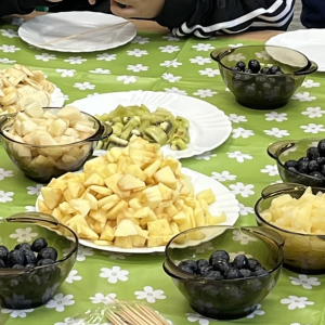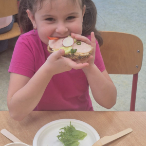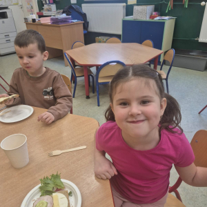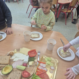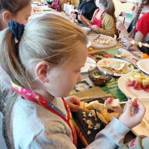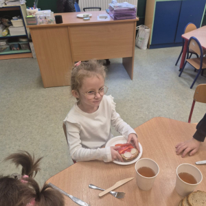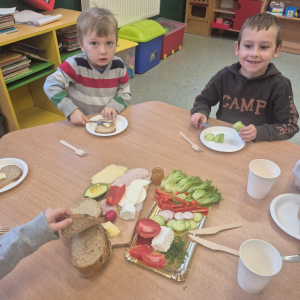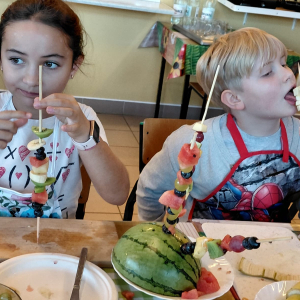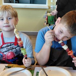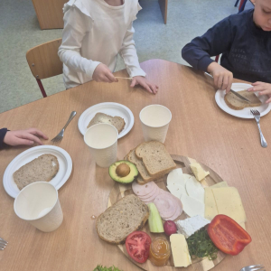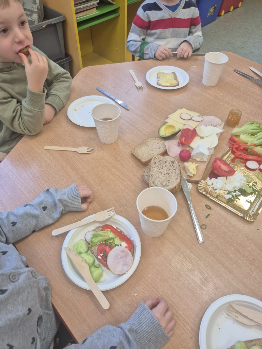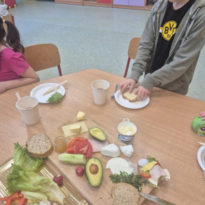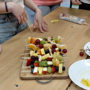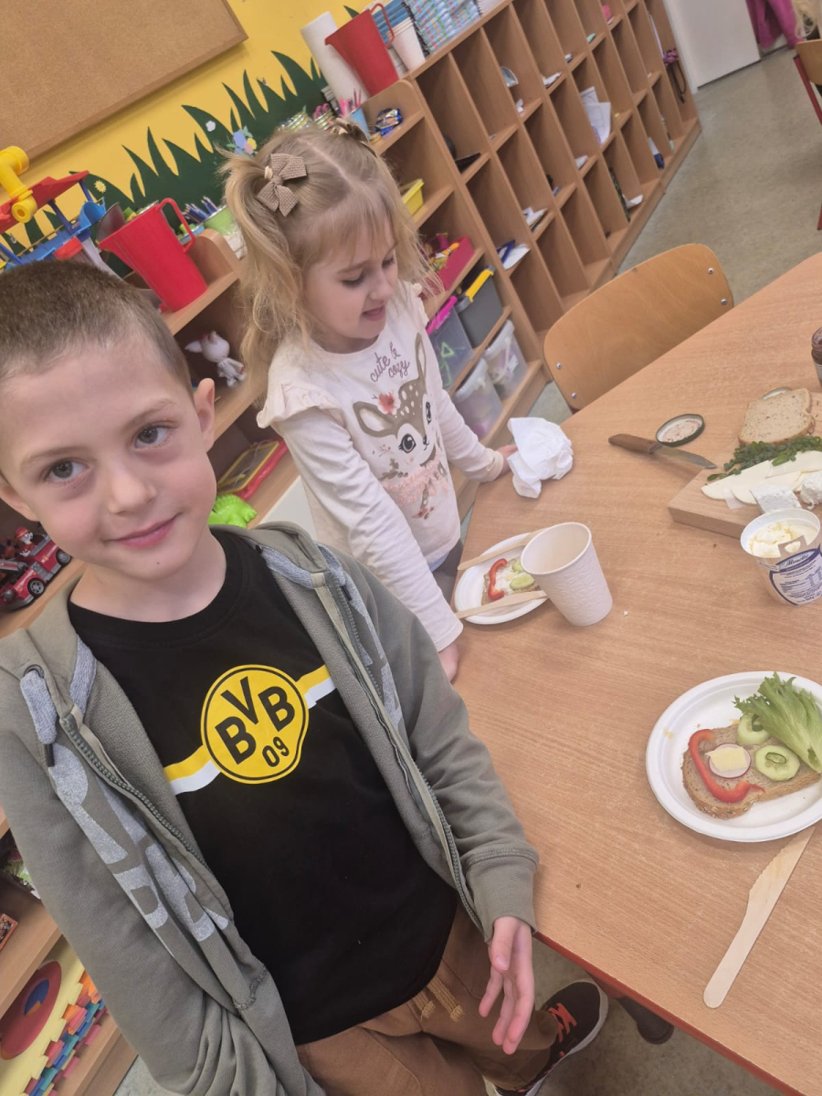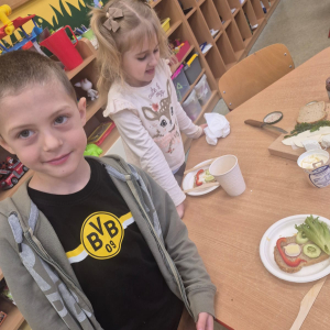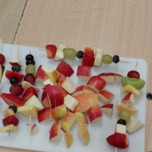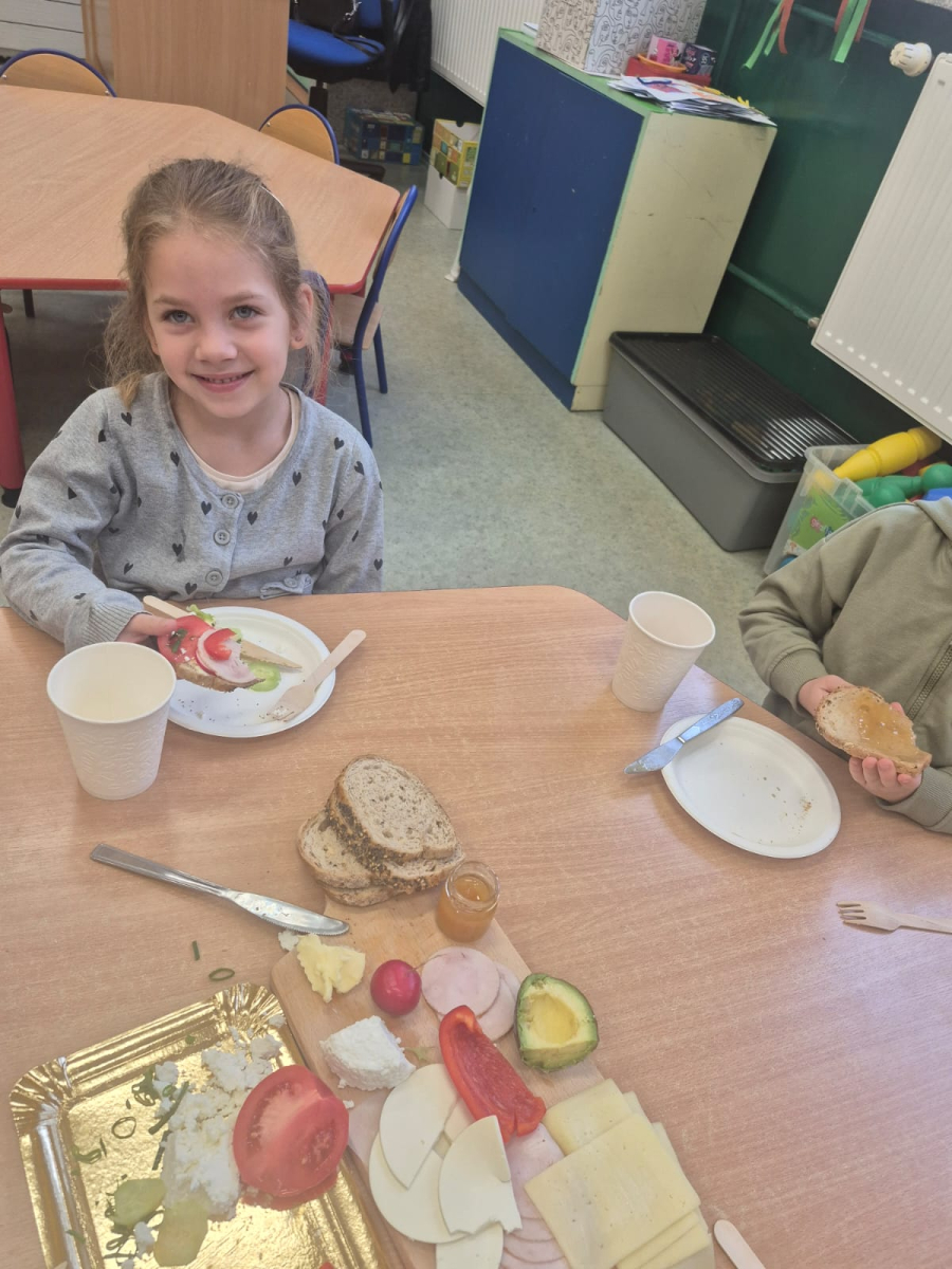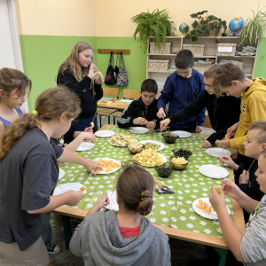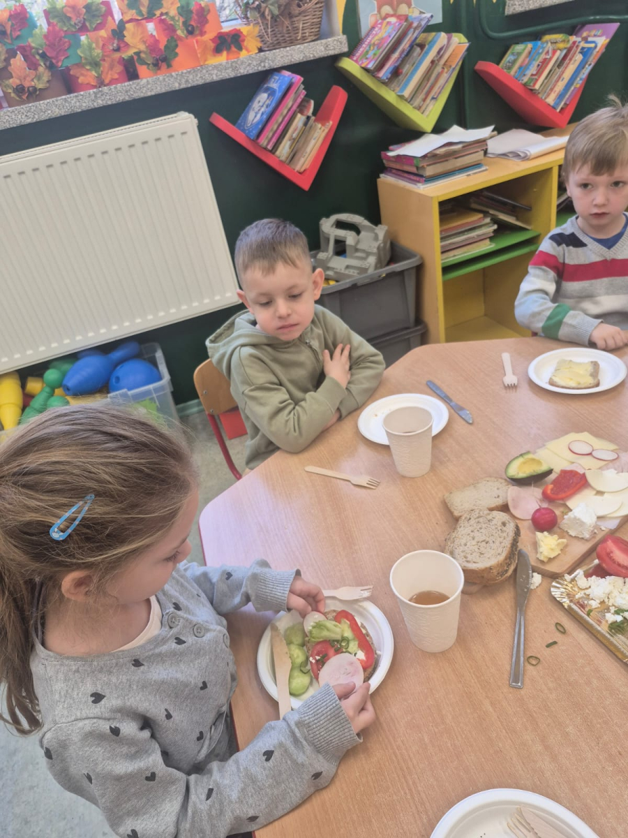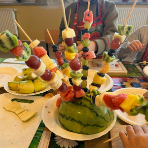 Dzisiaj świętowaliśmy Dzień Zdrowego Odżywiania i… było przepysznie! Przedszkolaki robiły zdrowe kanapki, w klasach zaś dzieci przygotowywały kolorowe, smaczne i zdrowe przekąski – szaszłyki owocowe i warzywne, które znikały szybciej niż zdążyliśmy je fotografować.