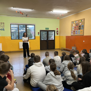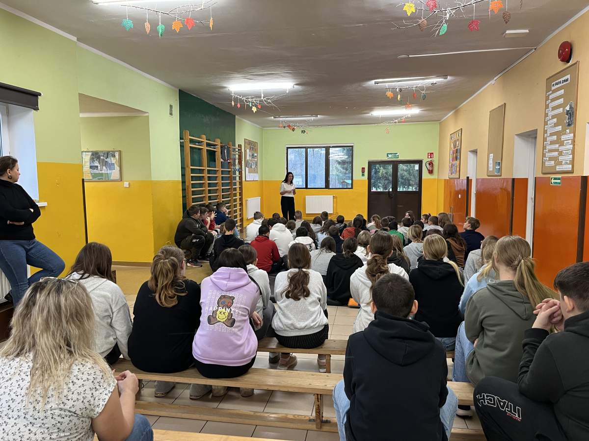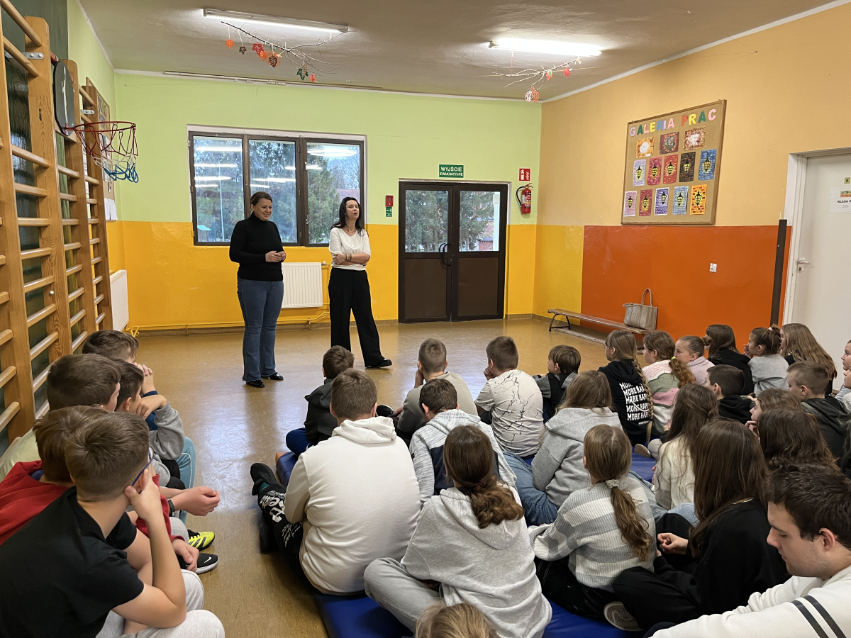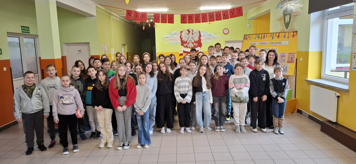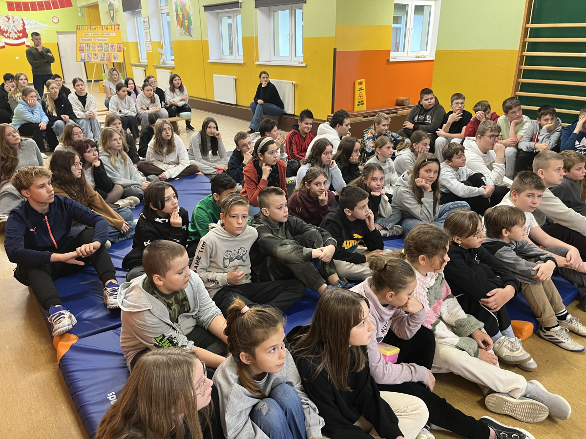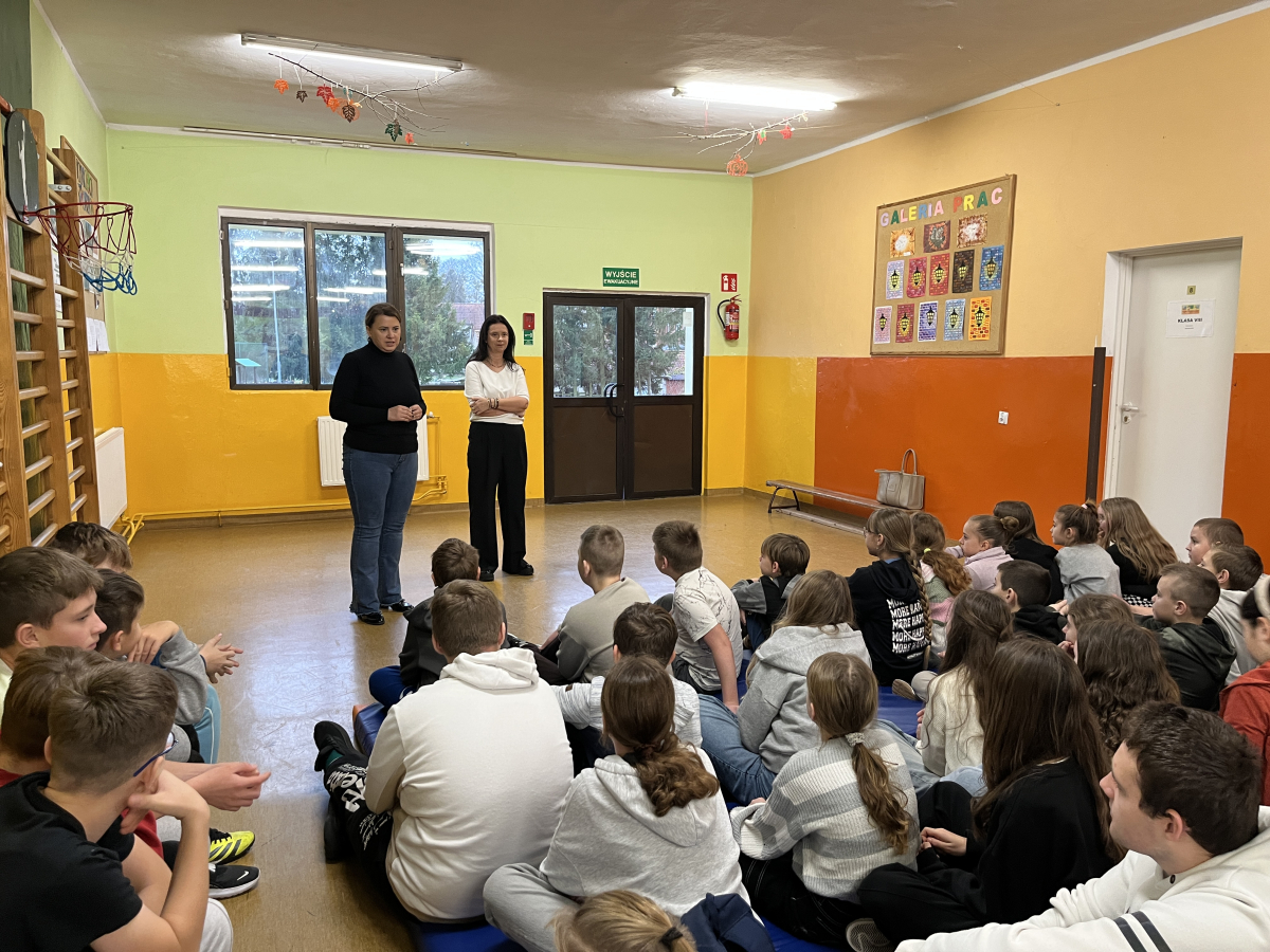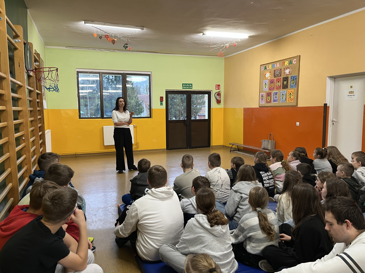 Uczniowie klas IV–VIII spotkali się na pogadance z kuratorem sądowym, Panią Justyną Szwarz. Celem spotkania było uświadomienie młodzieży konsekwencji niewłaściwych zachowań, omówienie odpowiedzialności prawnej nieletnich oraz promowanie postaw sprzyjających bezpieczeństwu i odpowiedzialności. Natomiast uczniowie klas I–III nauczyli się i wspólnie zaprezentowali piosenkę „Przyjaciel to skarb” kształtującą pozytywne postawy społeczne i rozumienie znaczenia przyjaźni i współpracy.