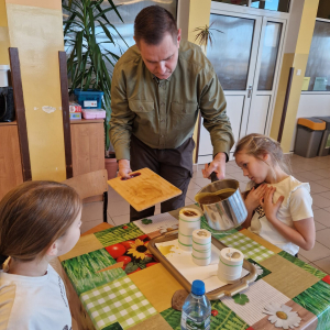 Po części teoretycznej uczestnicy wzięli udział w warsztatach praktycznych. Podczas zajęć: poznali różne rodzaje wosku pszczelego, dowiedzieli się, jak przygotować wosk do formowania, samodzielnie wykonali własne świece. Warsztaty pozwoliły uczniom nie tylko zdobyć nową wiedzę, lecz także sprawdzić się w pracy manualnej i rozwijać kreatywność.