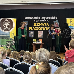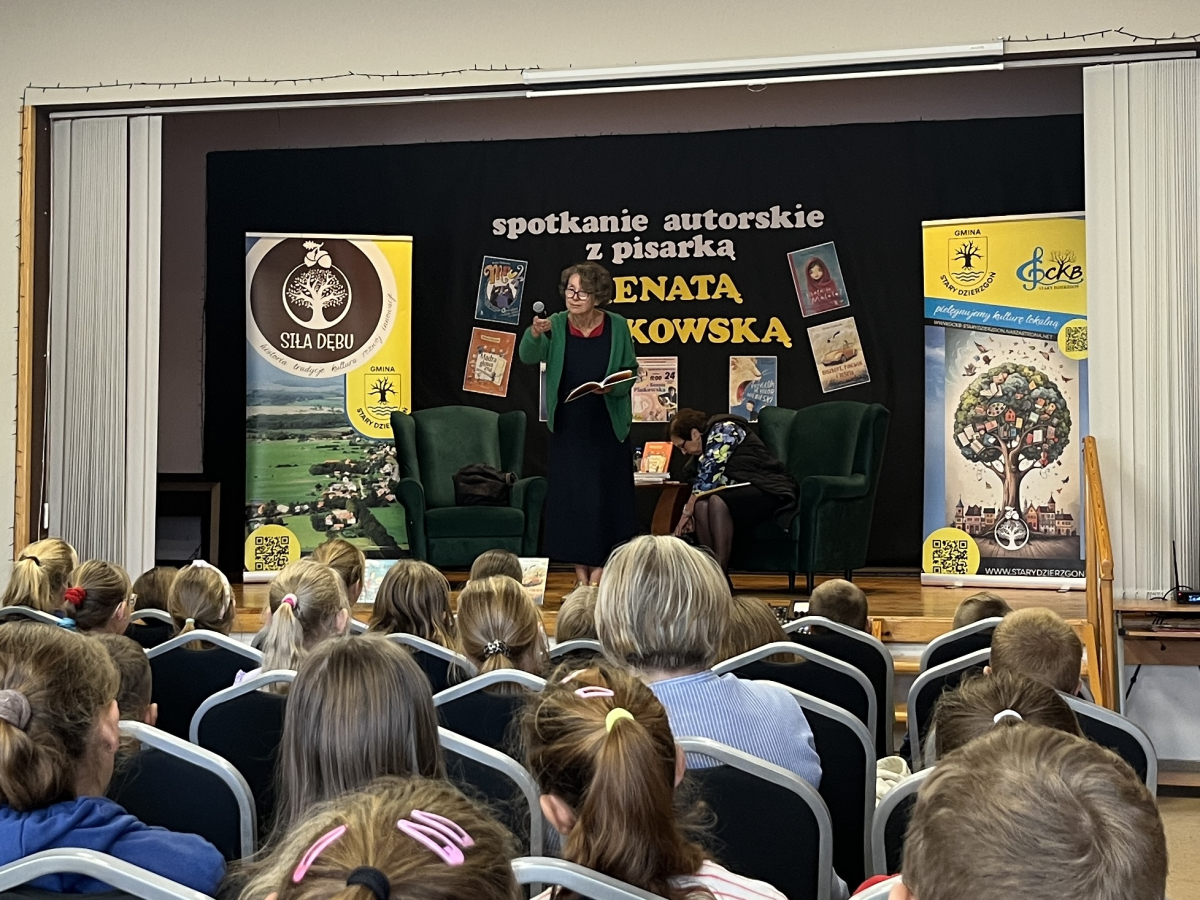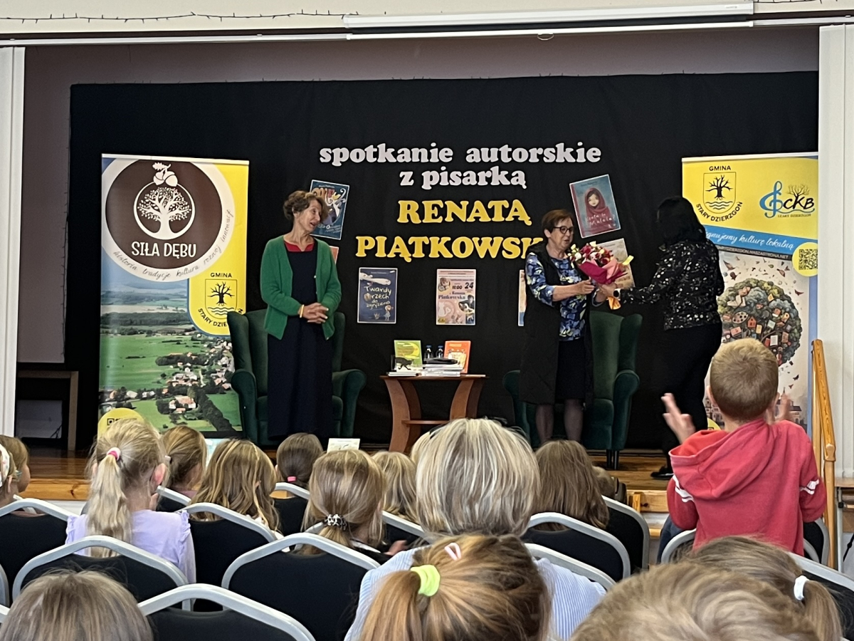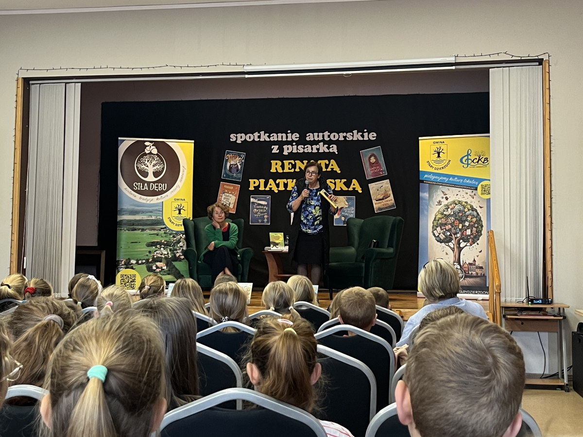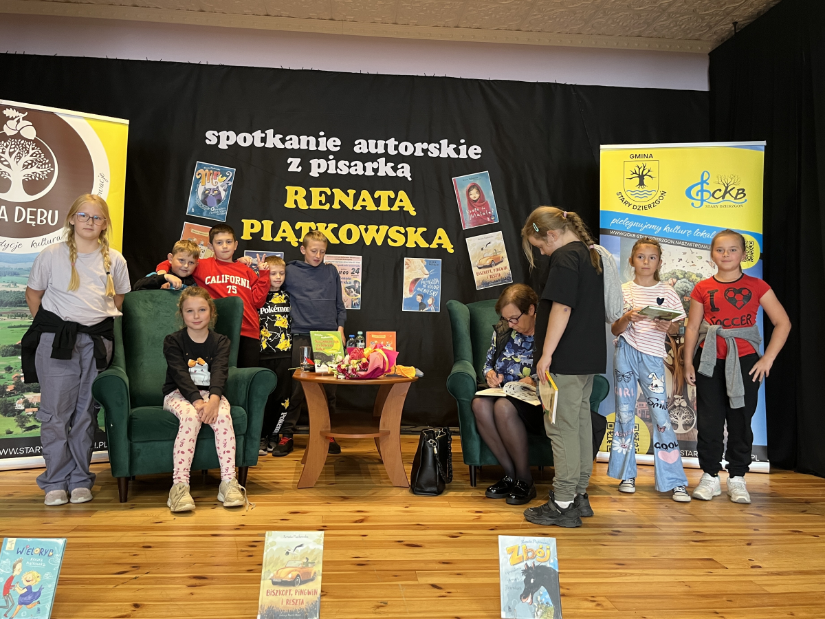 24 września 2025 r. w Gminnym Centrum Kulturalno – Bibliotecznym w Starym Dzierzgoniu odbyło się wyjątkowe spotkanie autorskie z Panią Renatą Piątkowską – jedną z najpopularniejszych współczesnych autorek książek dla dzieci i młodzieży. Wzięli w nim udział uczniowie klasy III i IV naszej szkoły.