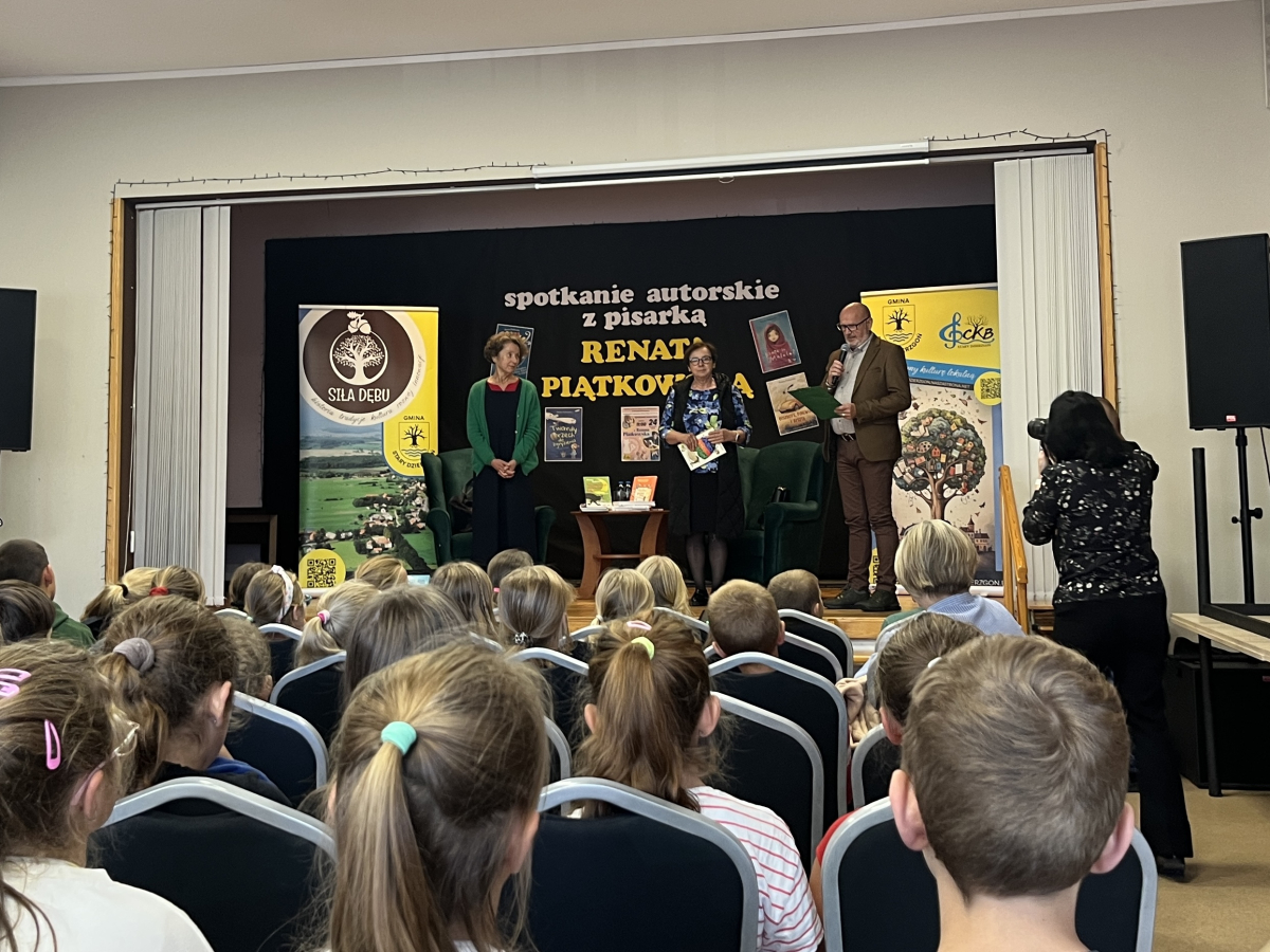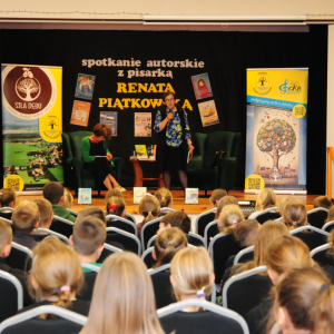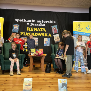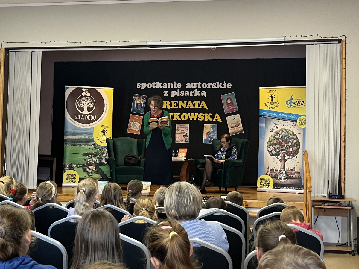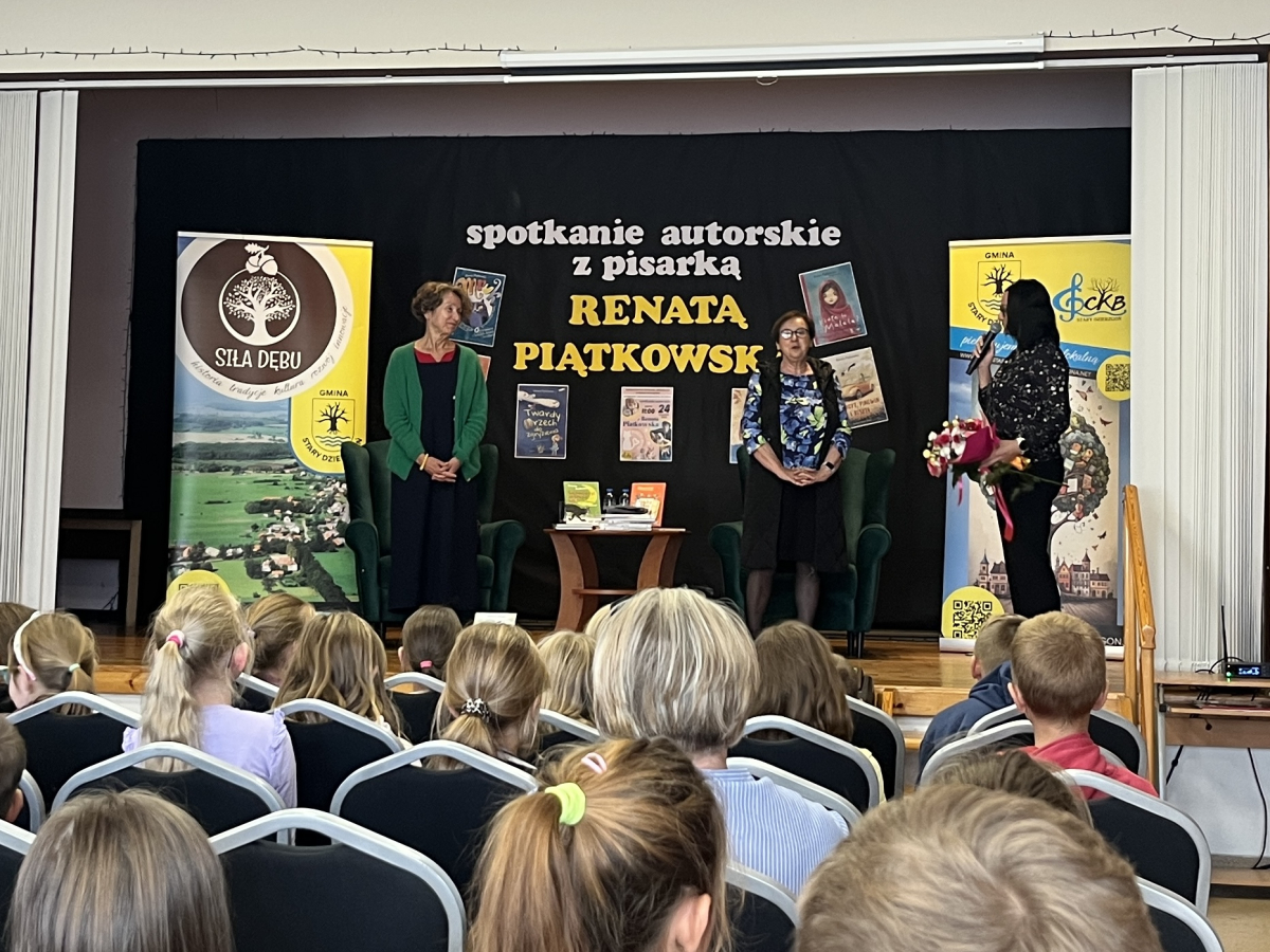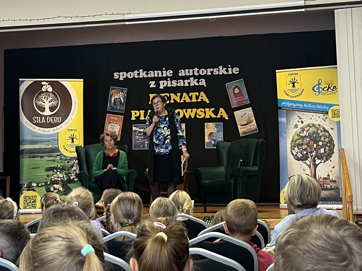 24 września 2025 r. w Gminnym Centrum Kulturalno – Bibliotecznym w Starym Dzierzgoniu odbyło się wyjątkowe spotkanie autorskie z Panią Renatą Piątkowską – jedną z najpopularniejszych współczesnych autorek książek dla dzieci i młodzieży. Wzięli w nim udział uczniowie klasy III i IV naszej szkoły.