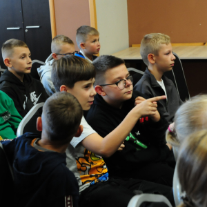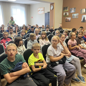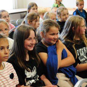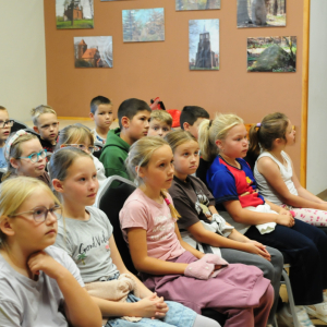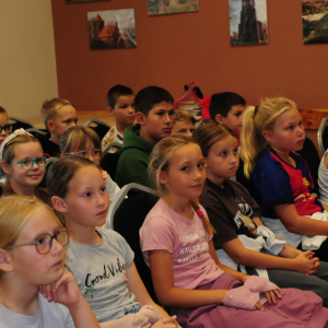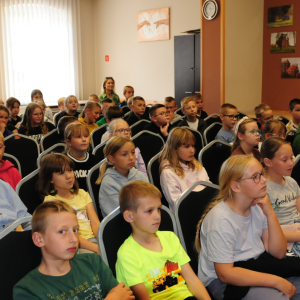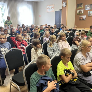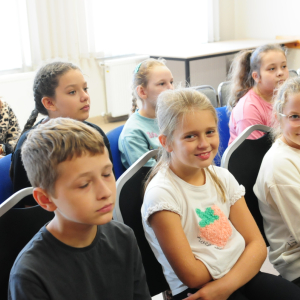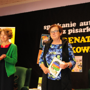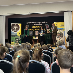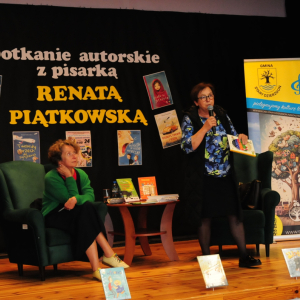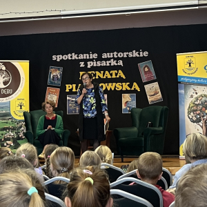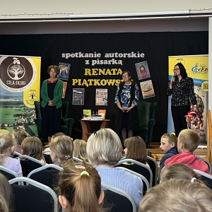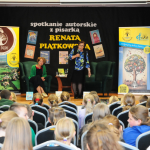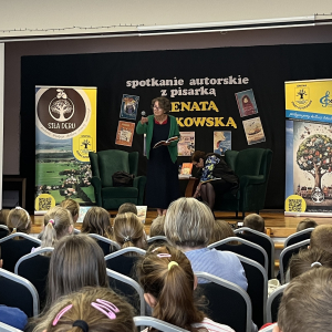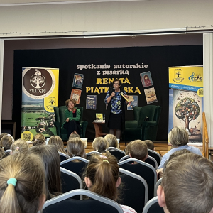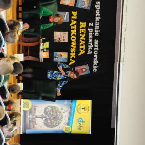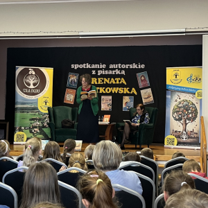 Pani Renata opowiadała uczniom o swojej drodze pisarskiej – od pierwszych pomysłów, przez proces tworzenia opowiadań, aż po wydawanie książek. Zdradziła, skąd czerpie inspiracje do swoich historii, przedstawiła także sylwetki kilku bohaterów swoich utworów i przybliżyła dzieciom tematykę najnowszych książek. Tematem przewodnim były przysłowia, przesądy i zwyczaje polskie. Barwne i pełne humoru opowieści pisarki sprawiły, że uczestnicy słuchali jej z ogromnym zainteresowaniem.