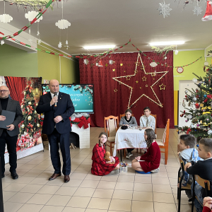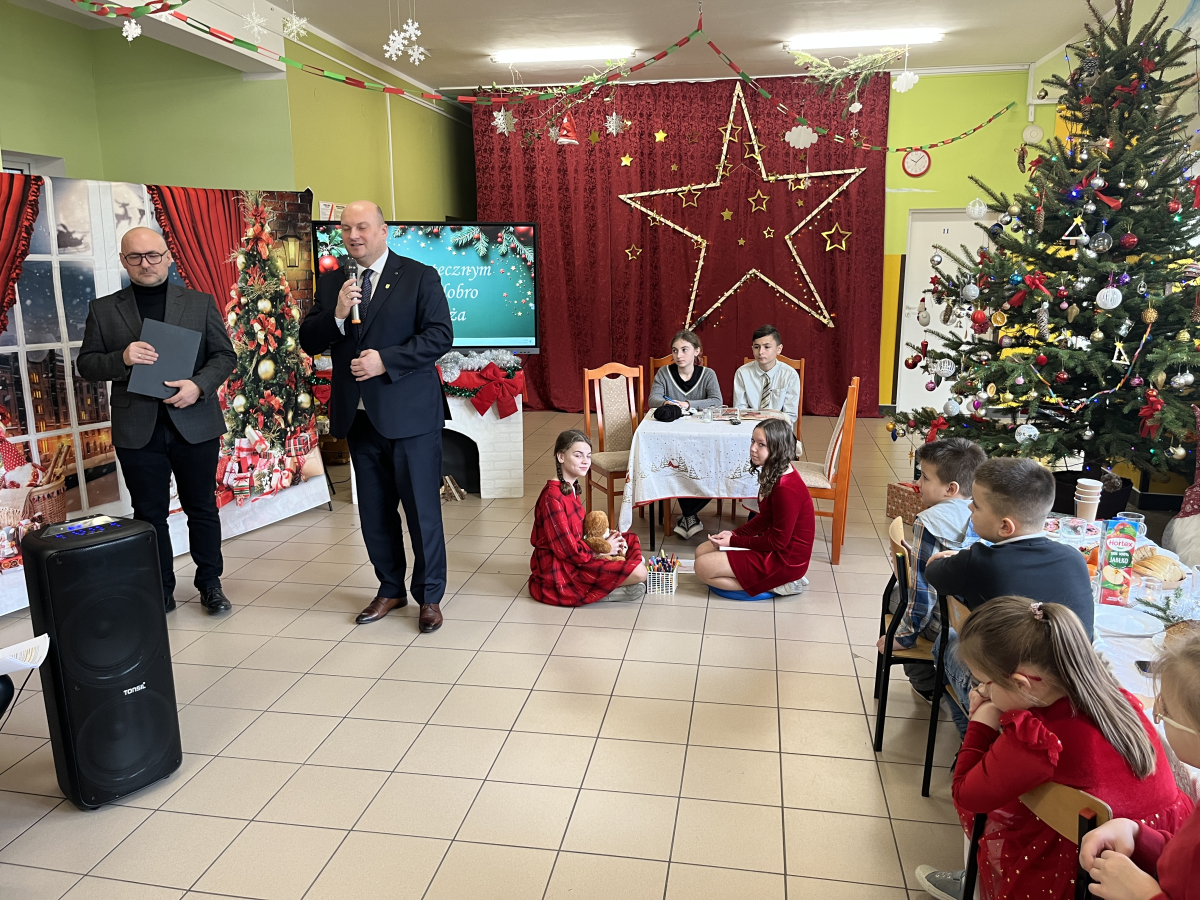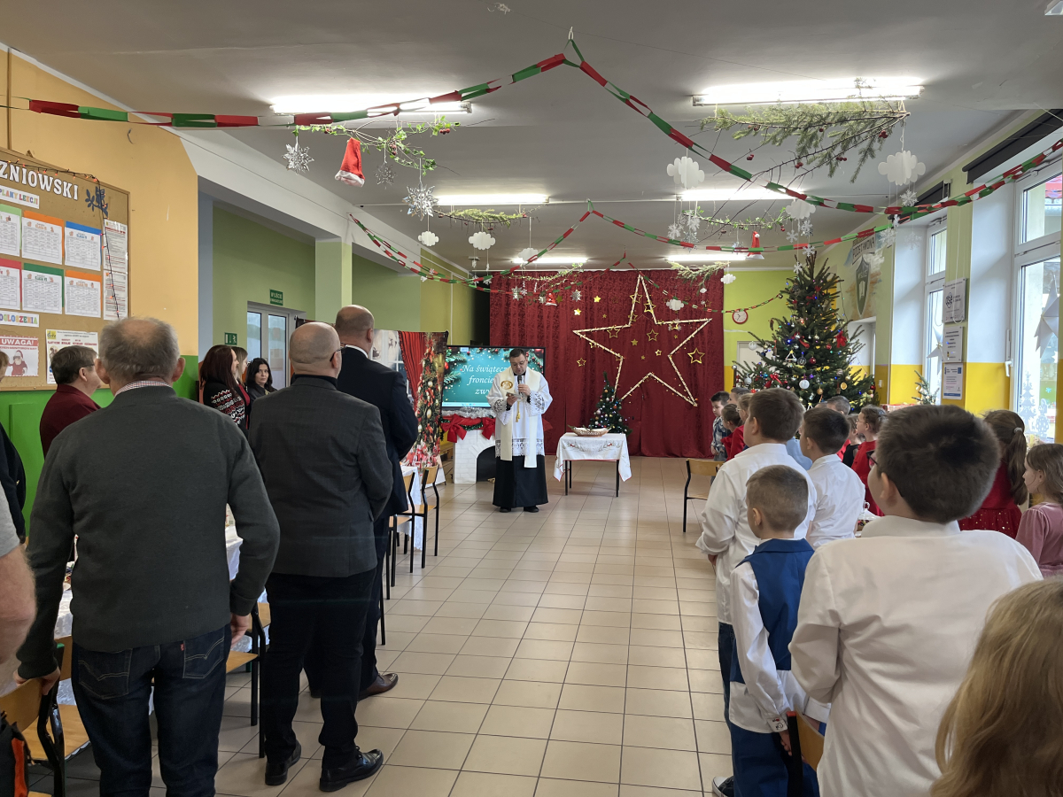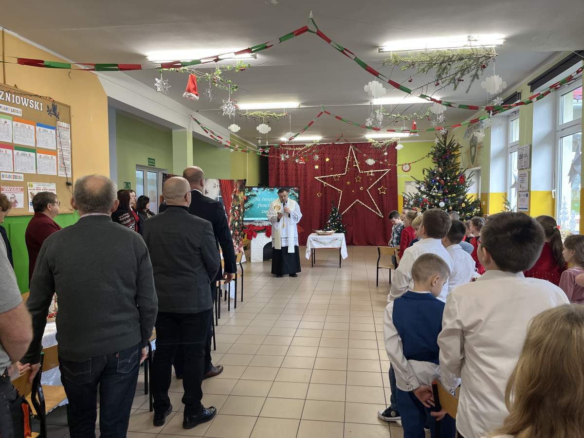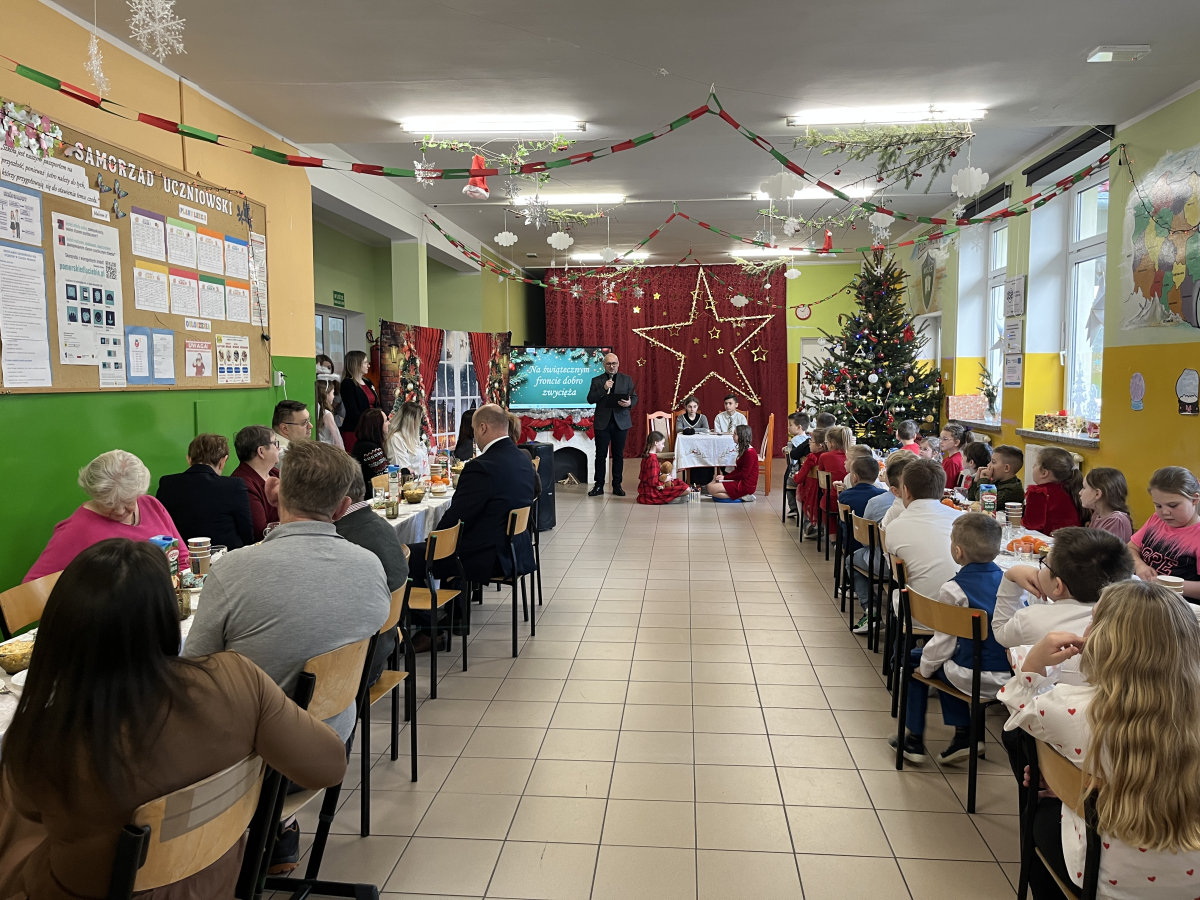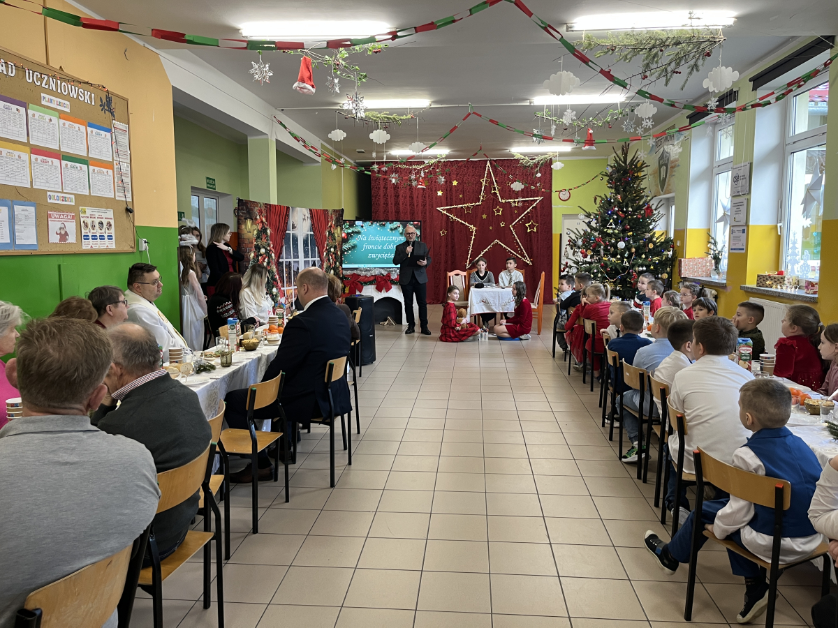Uroczystość rozpoczęła się serdecznymi życzeniami świątecznymi i noworocznymi, które złożyli Dyrektor Szkoły oraz Pan Wójt. W swoich wystąpieniach podkreślali oni wagę wspólnoty, życzliwości i wzajemnego szacunku, dziękując jednocześnie całej społeczności szkolnej za codzienną pracę i zaangażowanie.