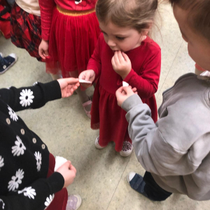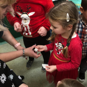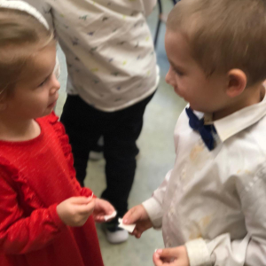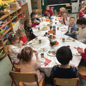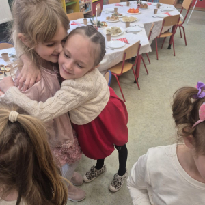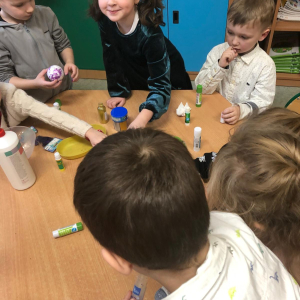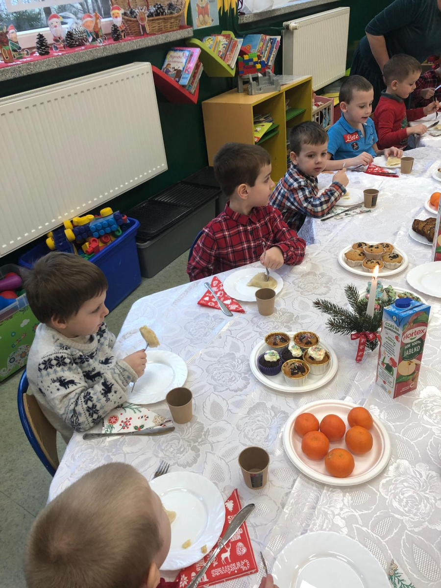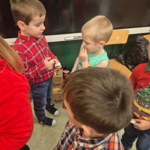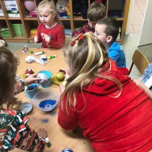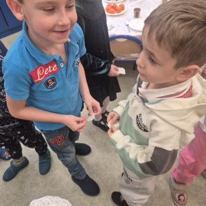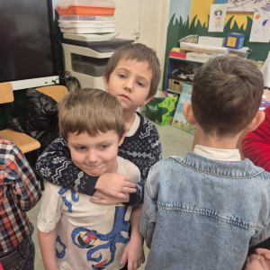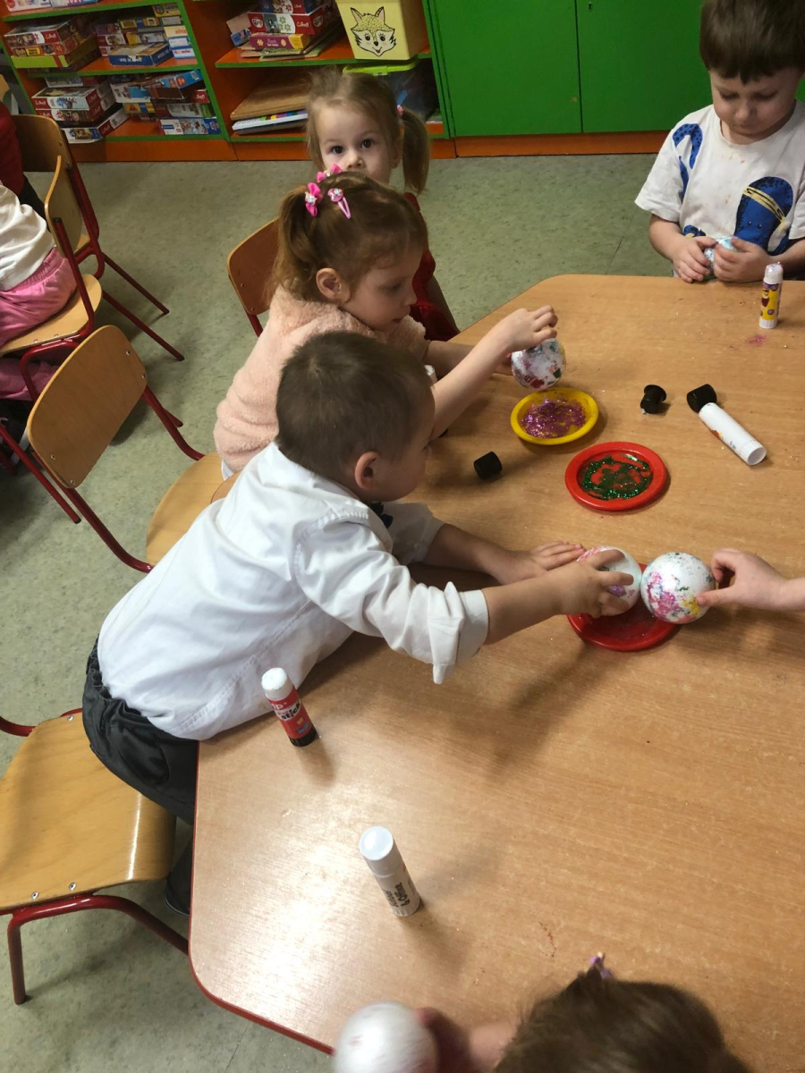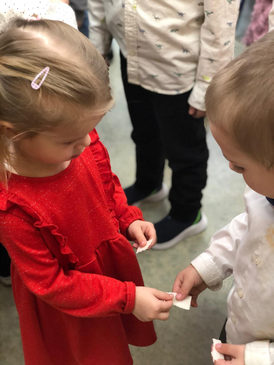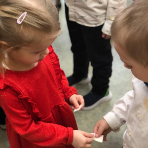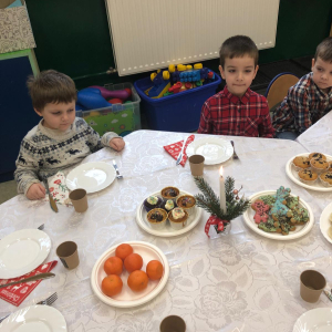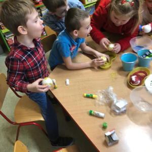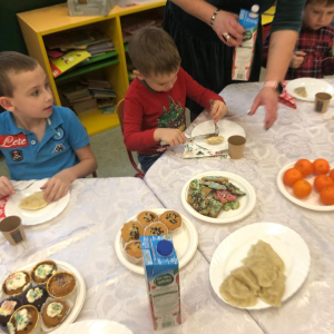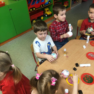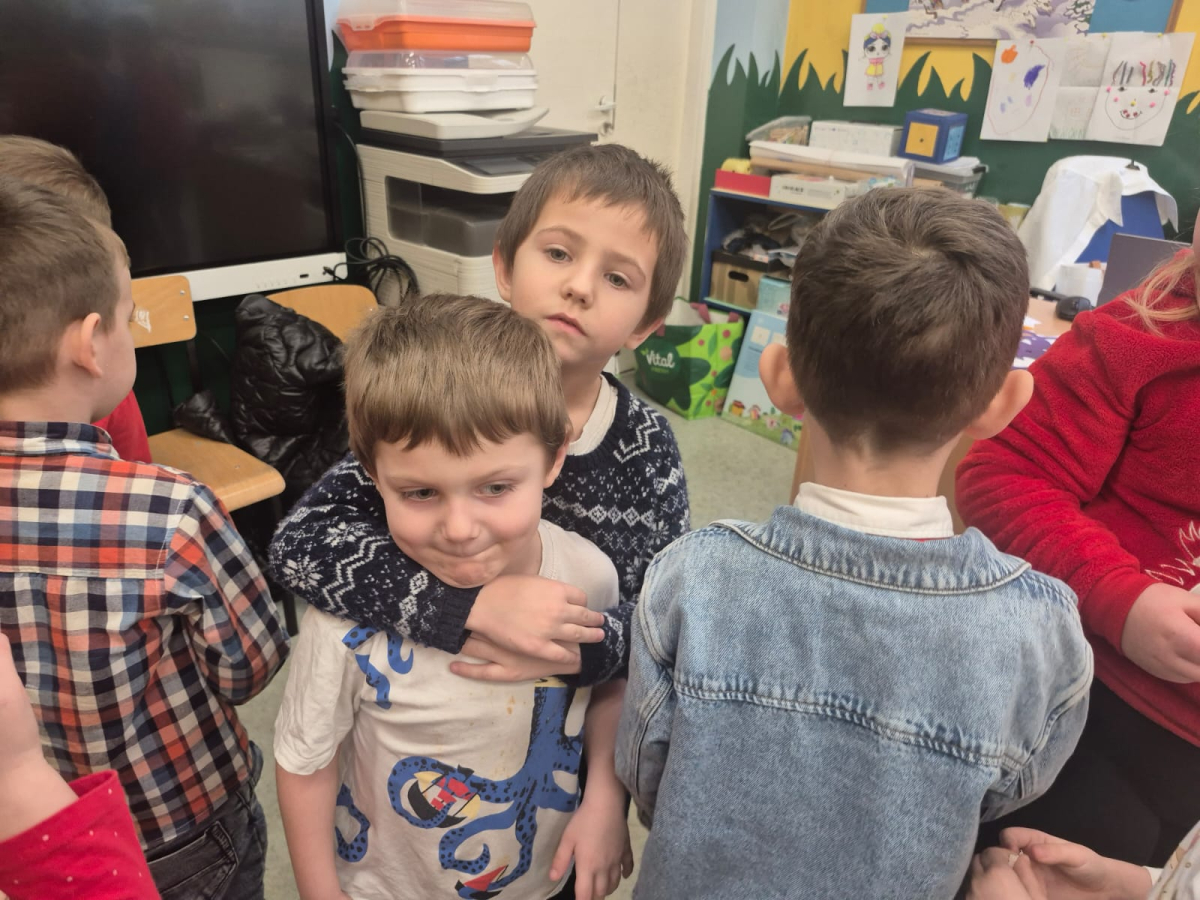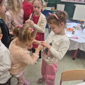 18 grudnia 2025 r. w naszym przedszkolu odbyła się wigilia. Był to wyjątkowy, świąteczny czas pełen radości i ciepłej atmosfery. Dzieci wspólnie wykonywały piękne bombki, słuchały świątecznej bajki, a także dzieliły się opłatkiem, składając sobie serdeczne życzenia. Całemu spotkaniu towarzyszyły kolędy, uśmiechy oraz radość ze wspólnie spędzonego czasu.