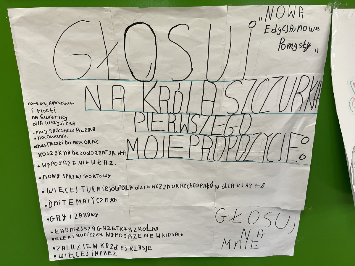 W środę 1 października 2025 roku w naszej szkole odbyły się wybory do Samorządu Uczniowskiego. Poprzedziła je zorganizowana w miniony czwartek debata wyborcza, podczas której kandydaci zaprezentowali swoje pomysły, plany i działania, jakie chcieliby realizować w nowym roku szkolnym. Wcześniej uczniowie ubiegający się o miejsca w samorządzie przygotowali i rozwiesili w szkole plakaty wyborcze, zachęcające do oddania głosu właśnie na nich.