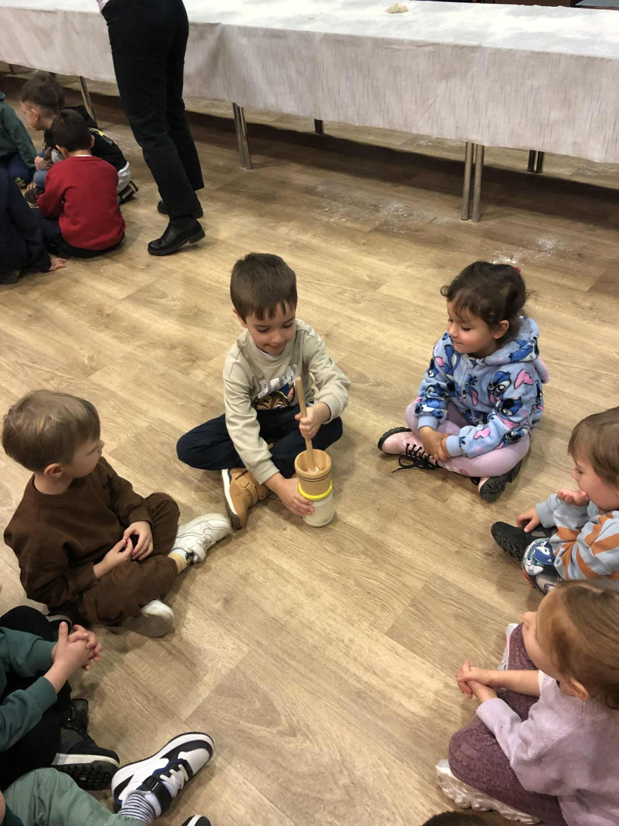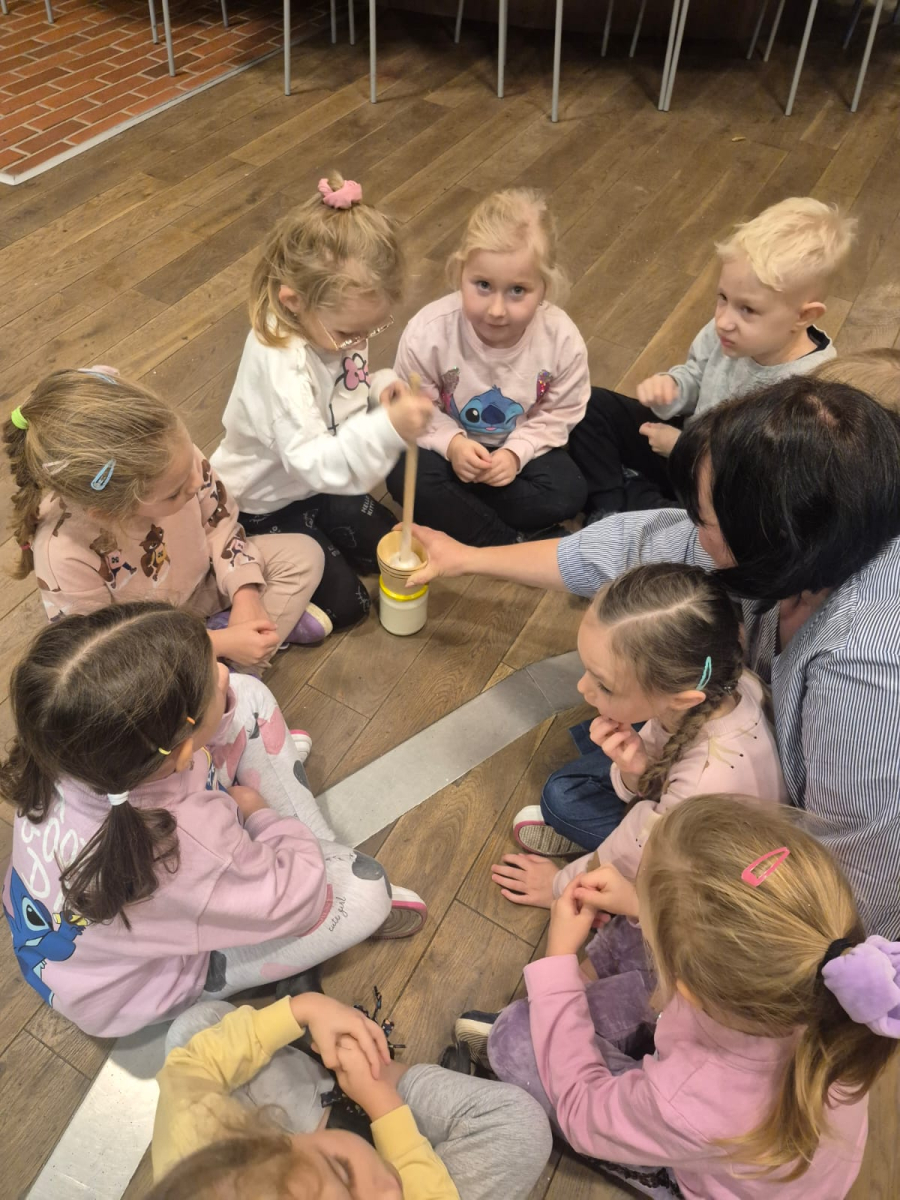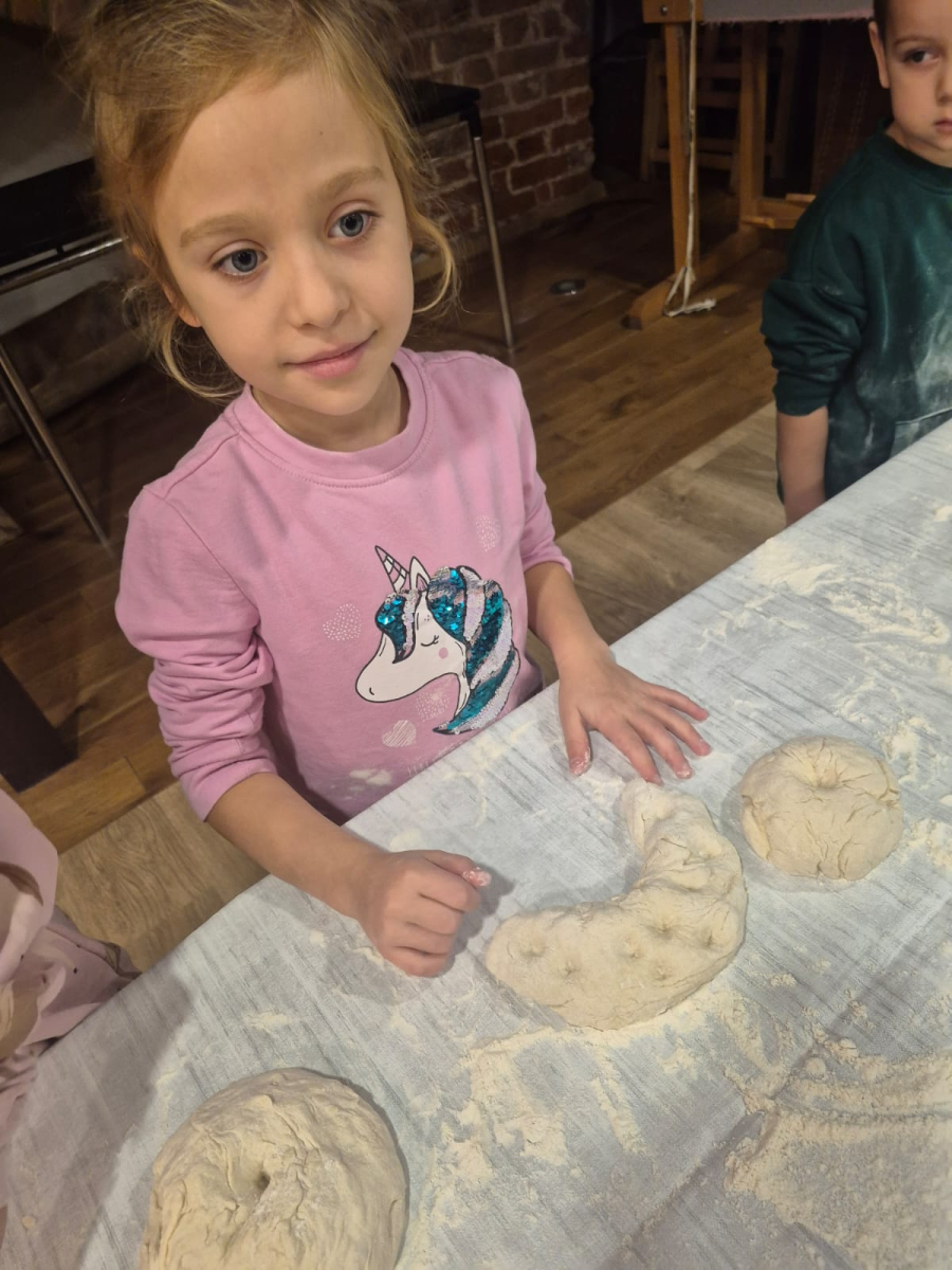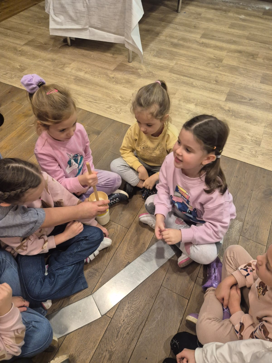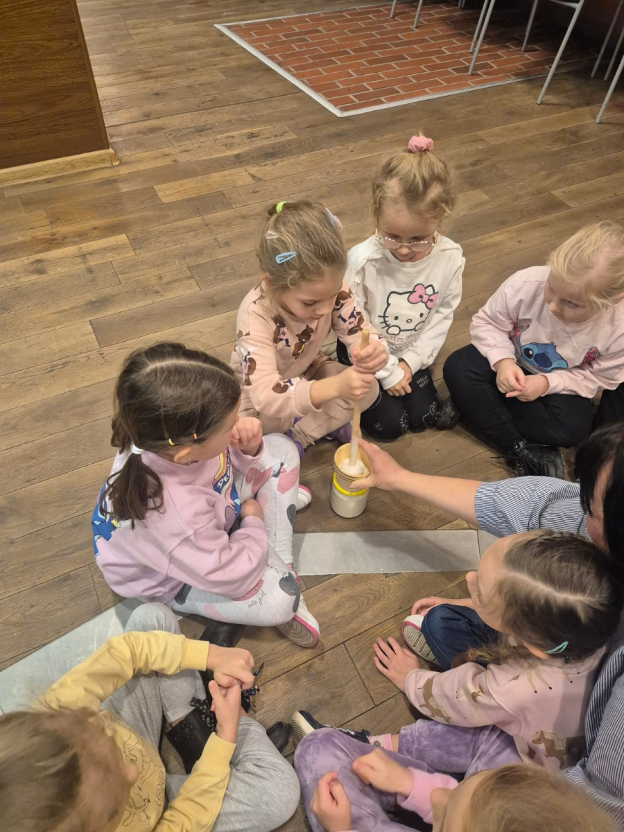 Najmłodsi z zaciekawieniem poznawali różne rodzaje zbóż – pszenicę, żyto, jęczmień i owies. Dowiedzieli się, jak wygląda droga ziarna od pola aż do stołu – od siewu, przez mielenie zboża, aż po wypiek pachnącego chleba. Dzieci mogły wszystkiego dotknąć, powąchać i spróbować swoich sił w wyrabianiu ciasta, a także ubijały śmietanę, by zrobić prawdziwe masło, co sprawiło im ogromną radość.
