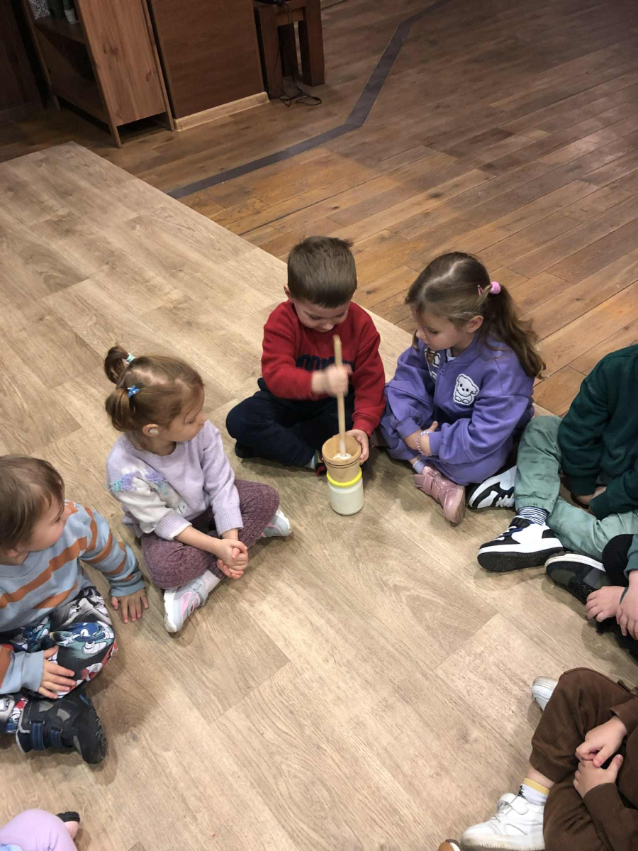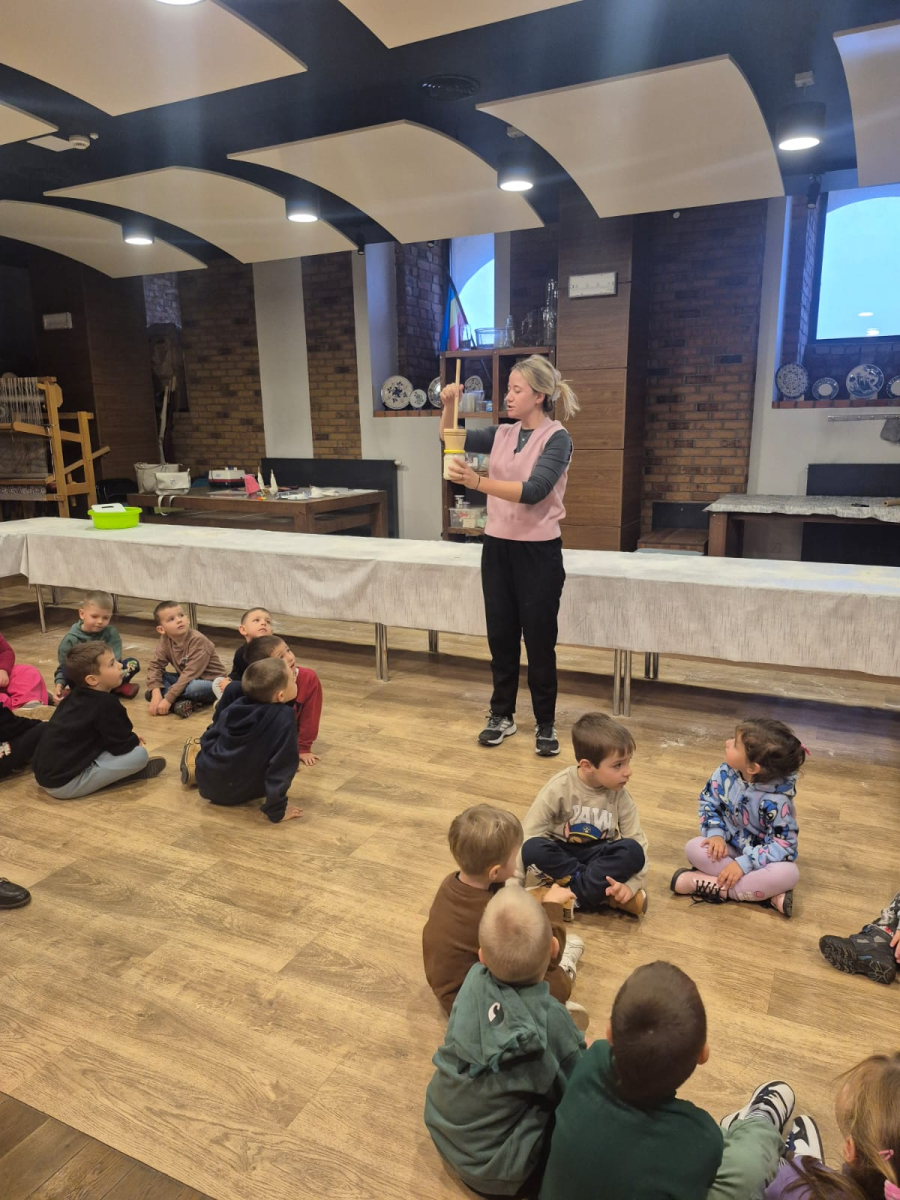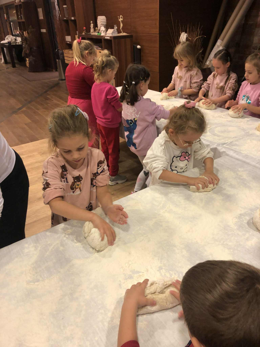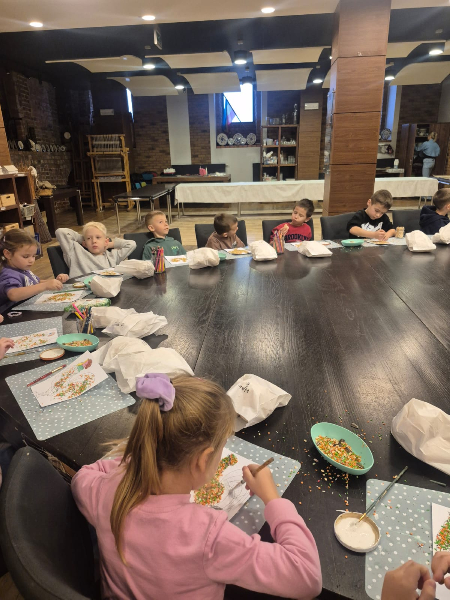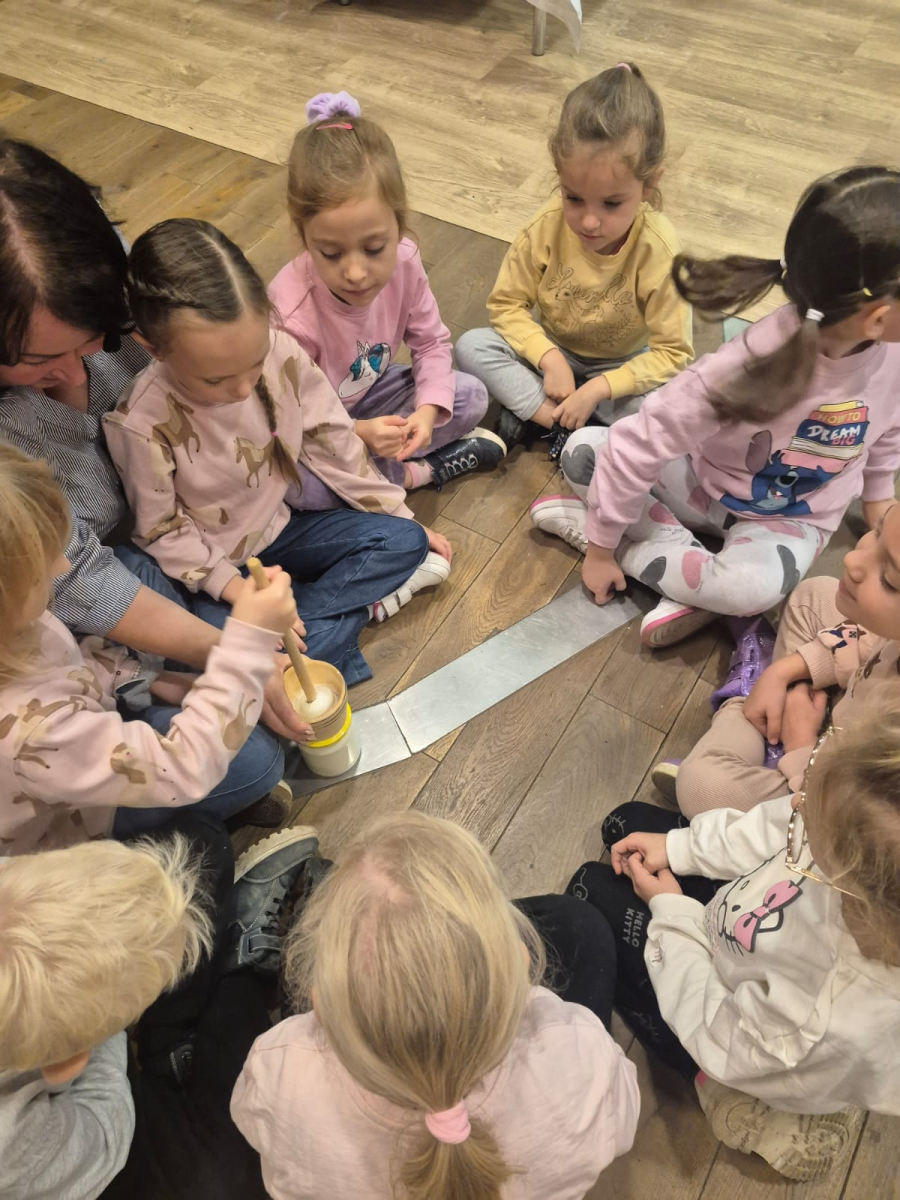 Najmłodsi z zaciekawieniem poznawali różne rodzaje zbóż – pszenicę, żyto, jęczmień i owies. Dowiedzieli się, jak wygląda droga ziarna od pola aż do stołu – od siewu, przez mielenie zboża, aż po wypiek pachnącego chleba. Dzieci mogły wszystkiego dotknąć, powąchać i spróbować swoich sił w wyrabianiu ciasta, a także ubijały śmietanę, by zrobić prawdziwe masło, co sprawiło im ogromną radość.