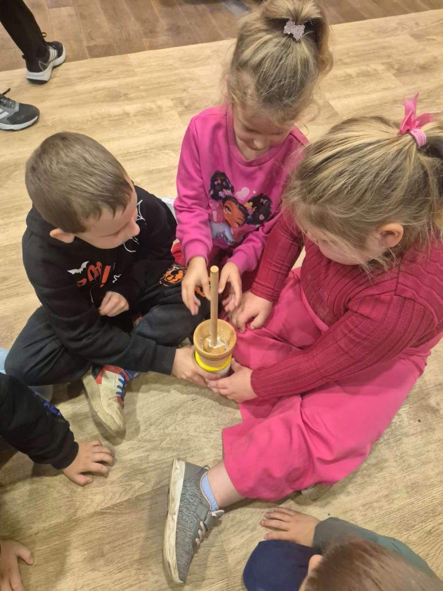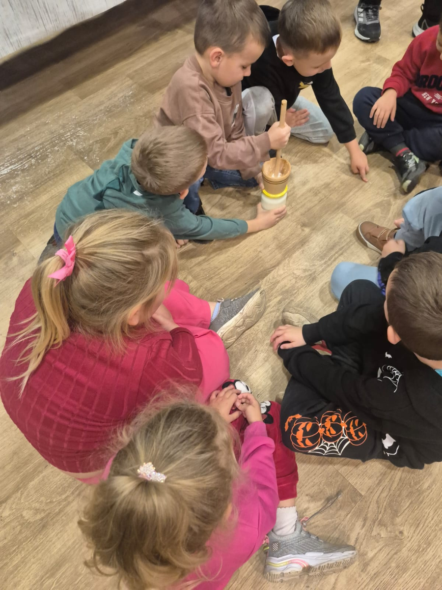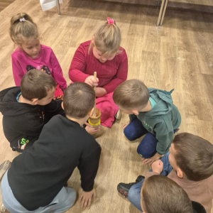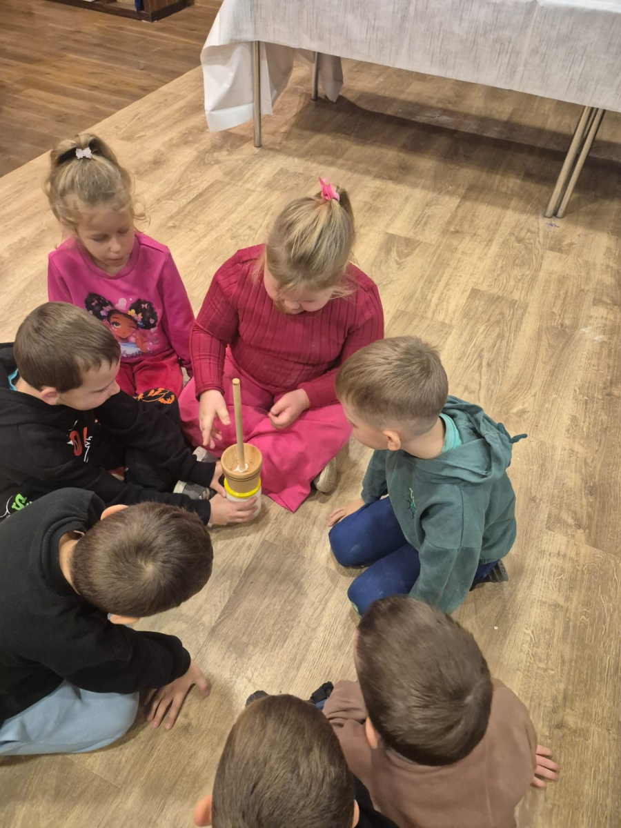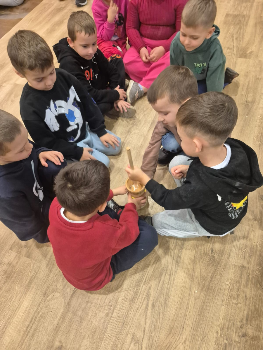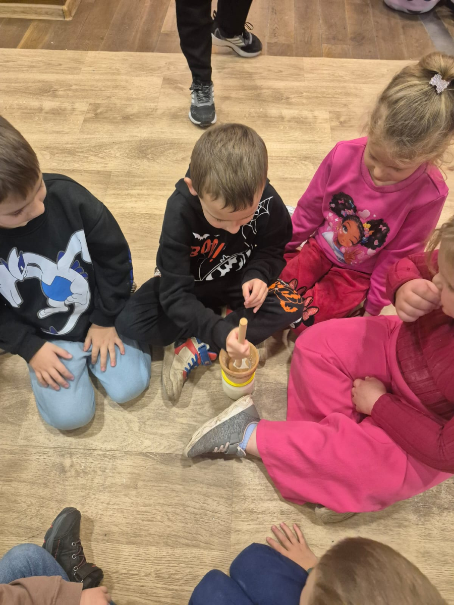 Najmłodsi z zaciekawieniem poznawali różne rodzaje zbóż – pszenicę, żyto, jęczmień i owies. Dowiedzieli się, jak wygląda droga ziarna od pola aż do stołu – od siewu, przez mielenie zboża, aż po wypiek pachnącego chleba. Dzieci mogły wszystkiego dotknąć, powąchać i spróbować swoich sił w wyrabianiu ciasta, a także ubijały śmietanę, by zrobić prawdziwe masło, co sprawiło im ogromną radość.