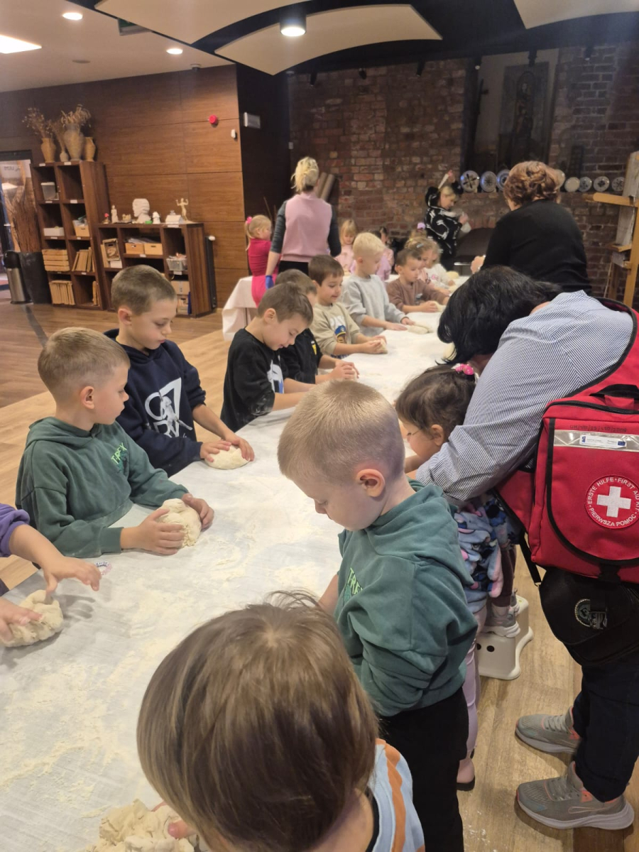 29 października dzieci z grup przedszkolnych 3–4-latków oraz 5–6-latków wzięły udział w wycieczce edukacyjnej w ramach projektu „Edukacja przedszkolna! Priorytetem w Gminie Stary Dzierzgoń”. Tym razem przedszkolaki uczestniczyły w warsztatach „Od ziarenka do bochenka”, podczas których odkrywały tajemnice powstawania chleba.
