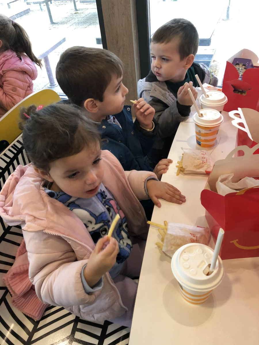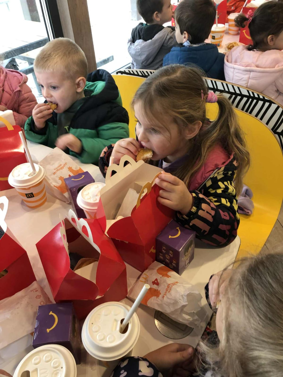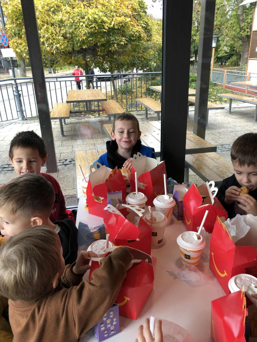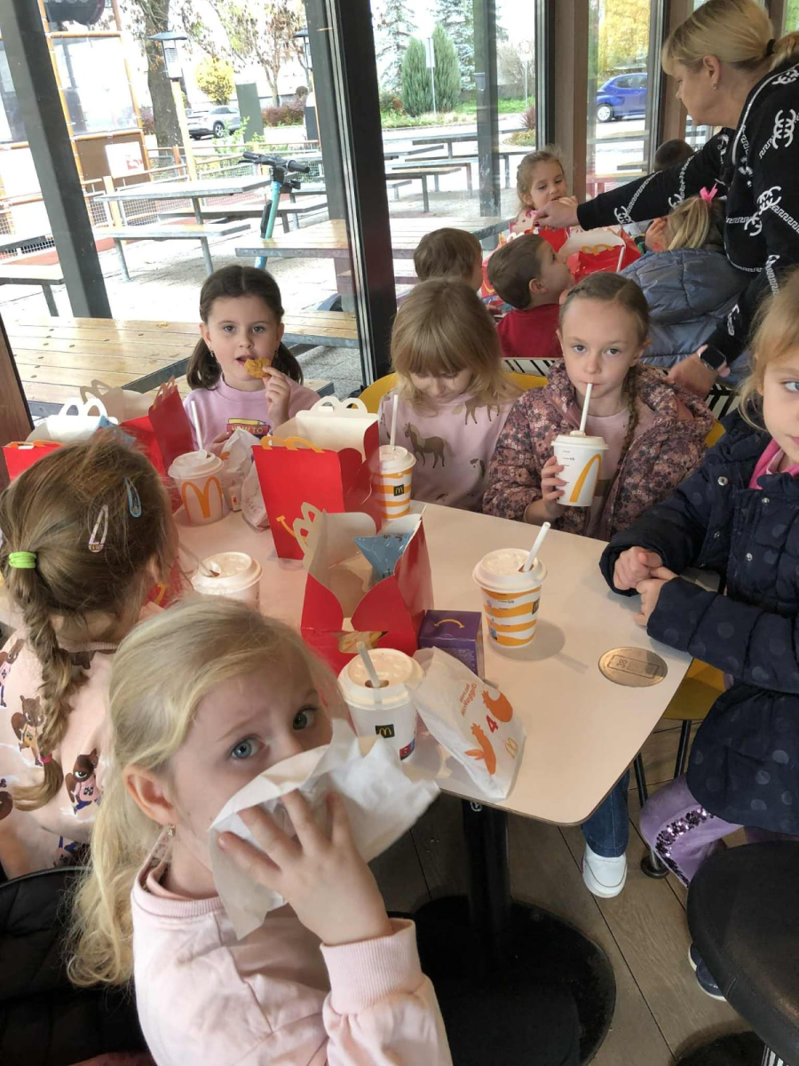 Po zakończonych warsztatach na uczestników czekała miła niespodzianka – wizyta w McDonald’s, gdzie przedszkolaki mogły odpocząć i podzielić się wrażeniami z pełnego emocji dnia.