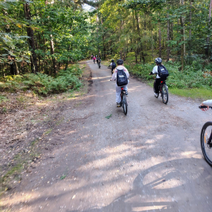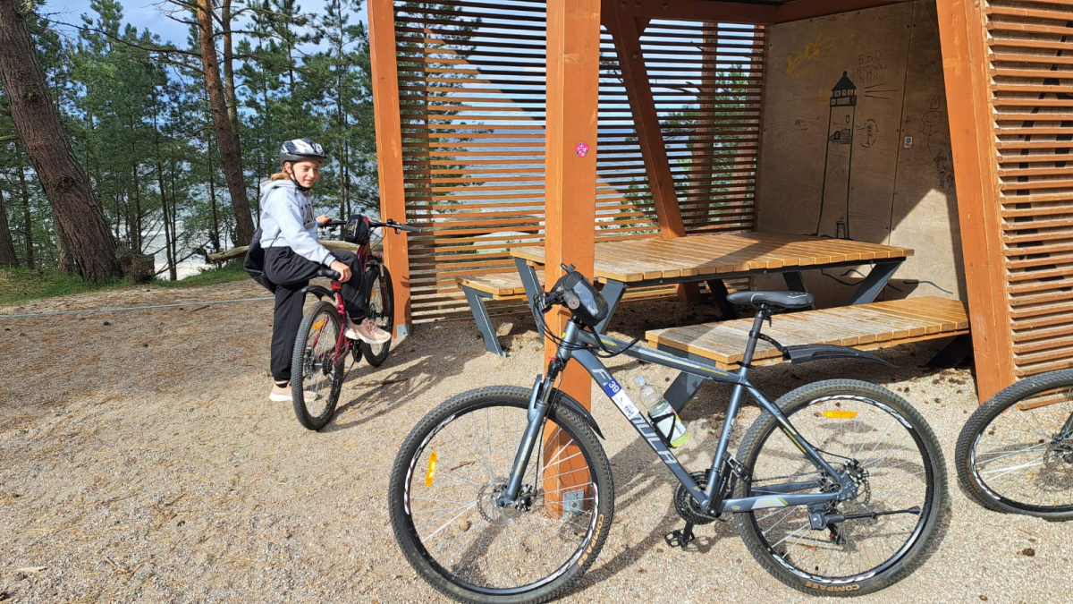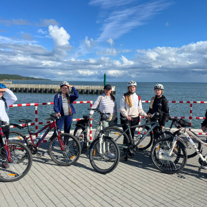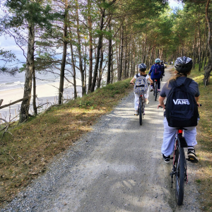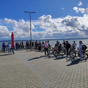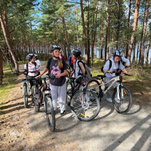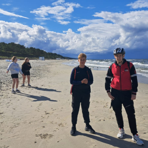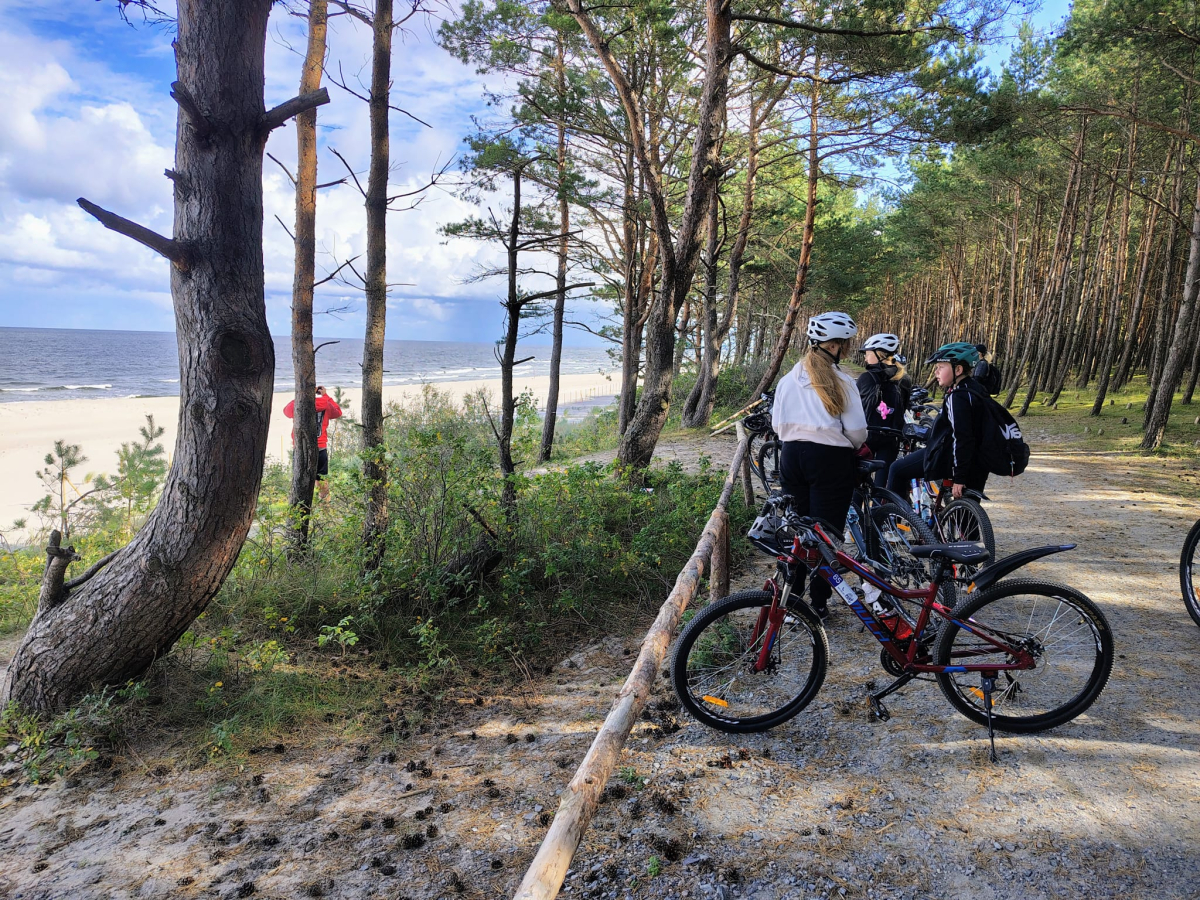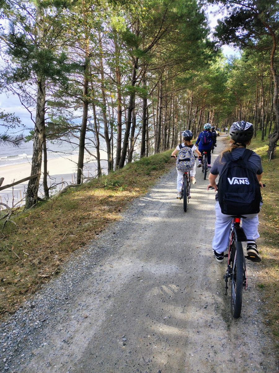Po drodze podziwialiśmy piękne widoki Mierzei Wiślanej, zatrzymywaliśmy się na krótkie postoje i wspólnie spędzaliśmy aktywnie czas.