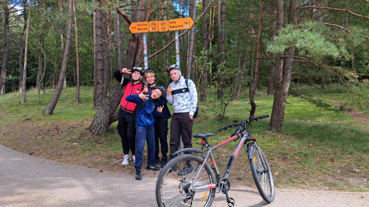 23 września 2025 r. uczniowie klas 4–8 wyruszyli w trasę rowerową Kąty Rybackie – Krynica Morska, która liczyła około 40 km w obie strony. Pogoda dopisała, humory również!
