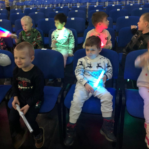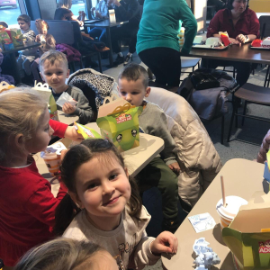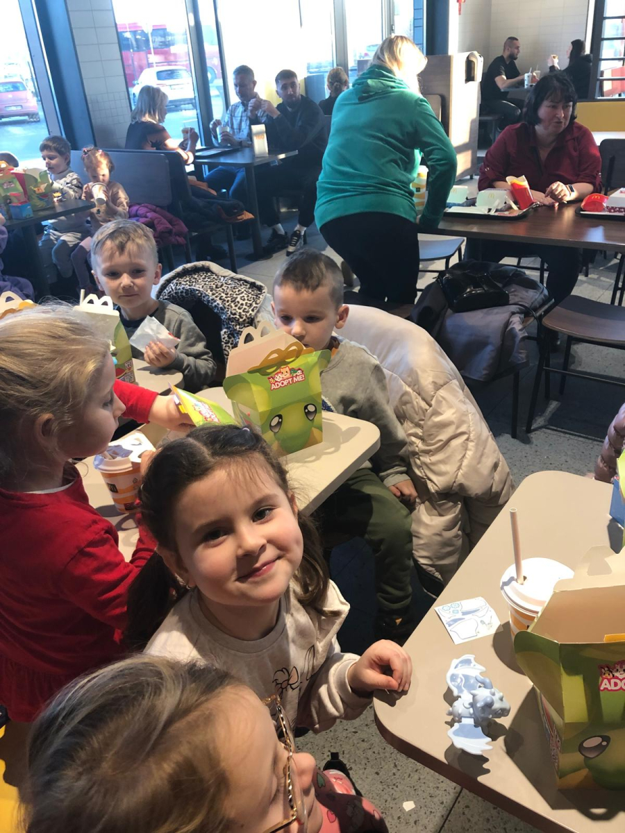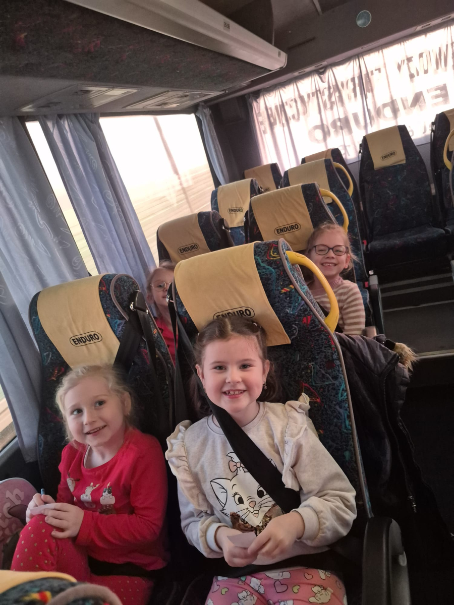 W piątek 19 grudnia dzieci z przedszkola wybrały się na wycieczkę do Elbląga na interaktywny spektakl pt. „W poszukiwaniu Świętego Mikołaja”. Przedstawienie bardzo podobało się dzieciom — mogły aktywnie uczestniczyć w wydarzeniu, odpowiadać na pytania oraz wspólnie pomagać bohaterom w odnalezieniu Świętego Mikołaja. Wyjazd dostarczył wszystkim wielu radości i niezapomnianych wrażeń. Po spektaklu dzieci odwiedziły restaurację McDonald’s, co było dodatkową atrakcją i sprawiło im wiele radości. Wycieczka przebiegła w miłej i bezpiecznej atmosferze.